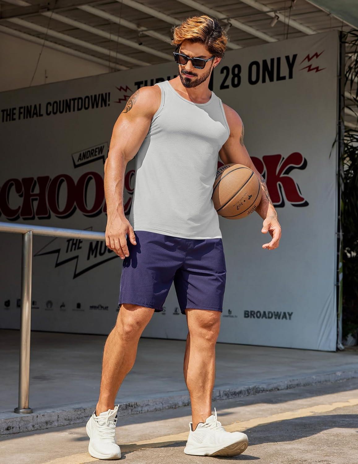 imageCOOFANDY Mens Workout Tank Tops UPF 50 Sleeveless Gym Muscle Shirts Cooling Quick Dry Bodybuilding Tanks for Swim BeachLight GrayRoyal Blue