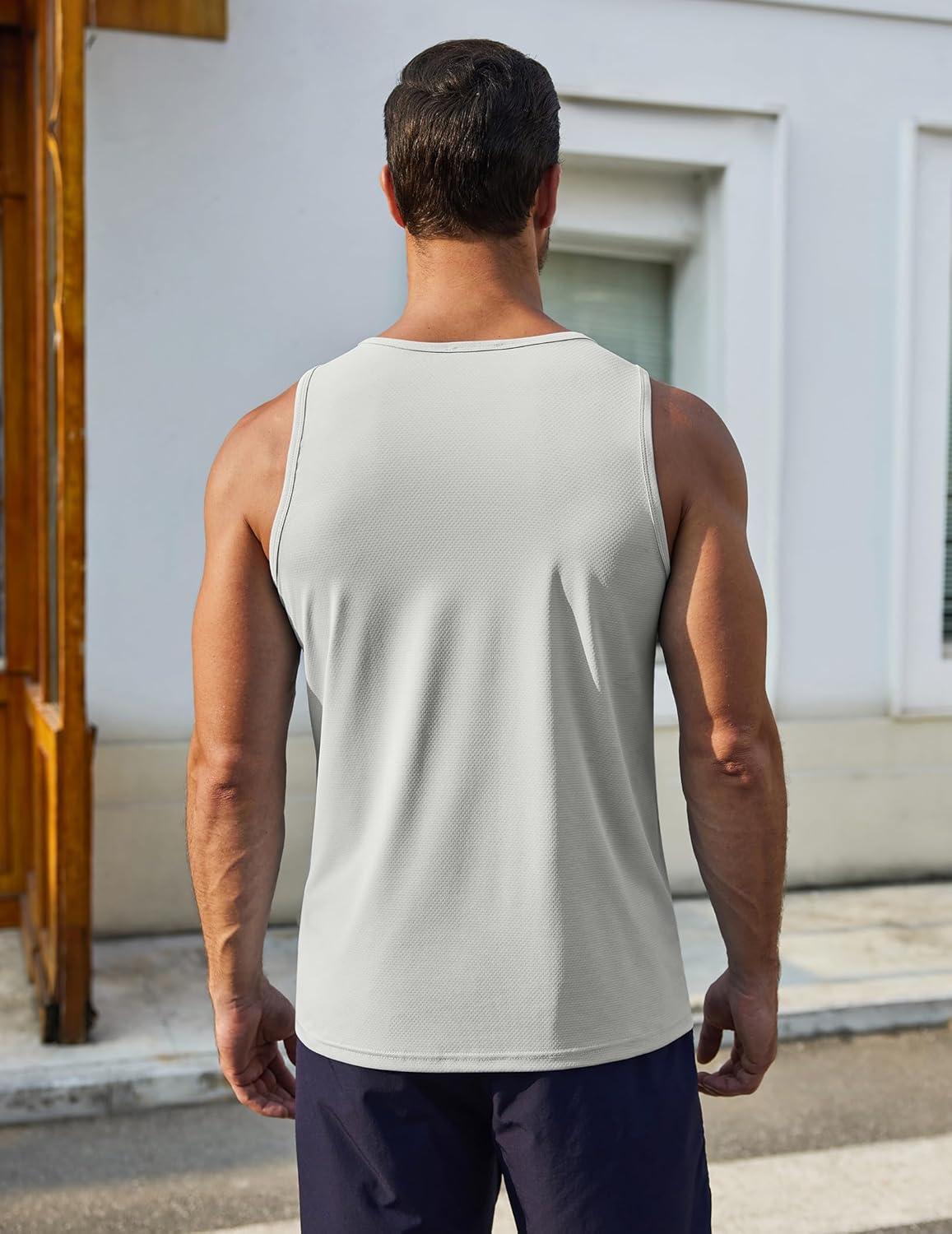 COOFANDY Men’s Workout Tank Tops UPF 50+ Sleeveless Gym Muscle Shirts Cooling Quick Dry Bodybuilding Tanks for Swim Beach(Black/White/Light Gray)