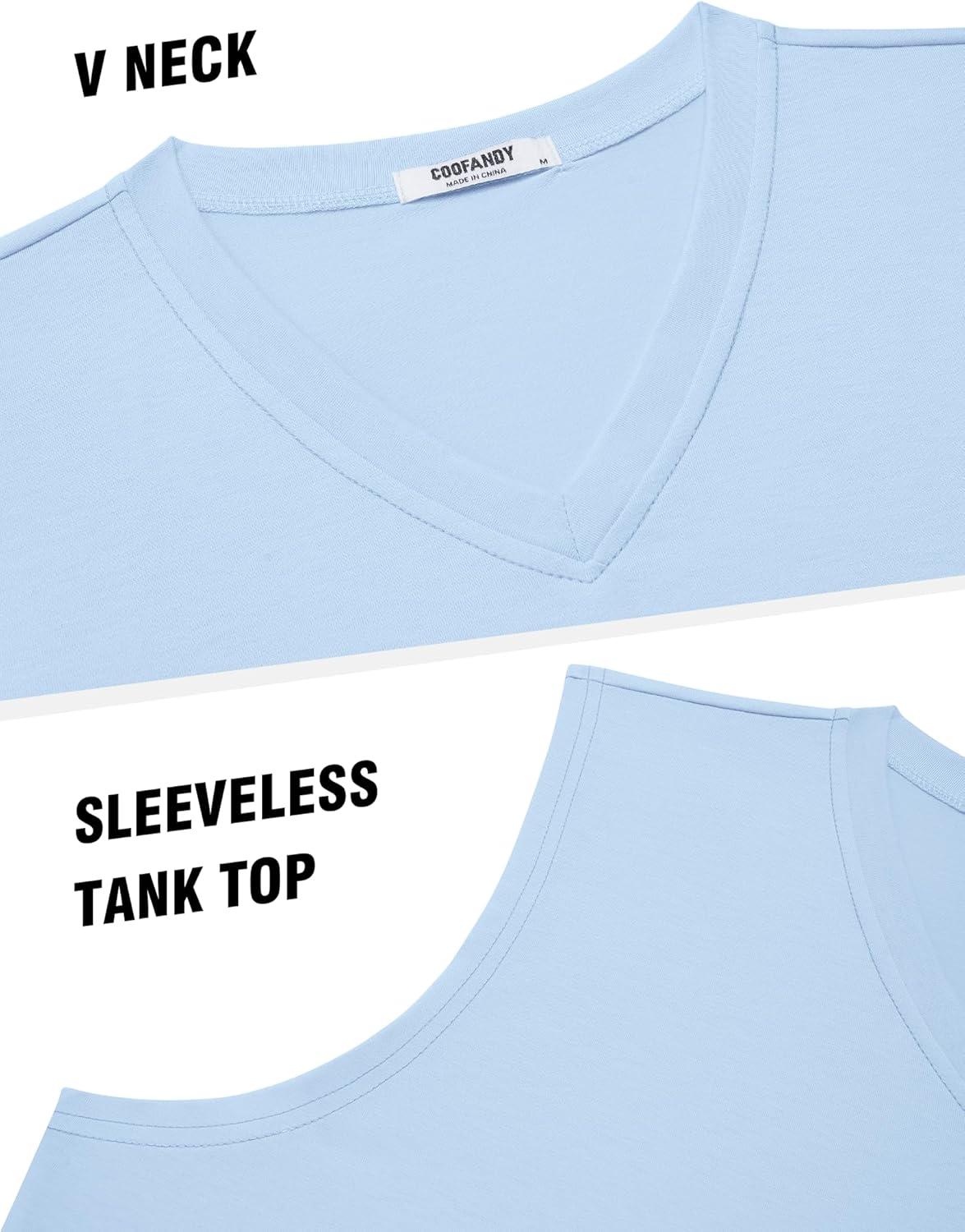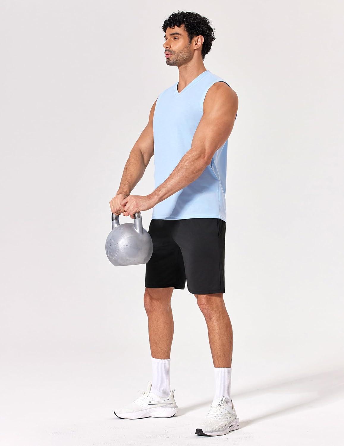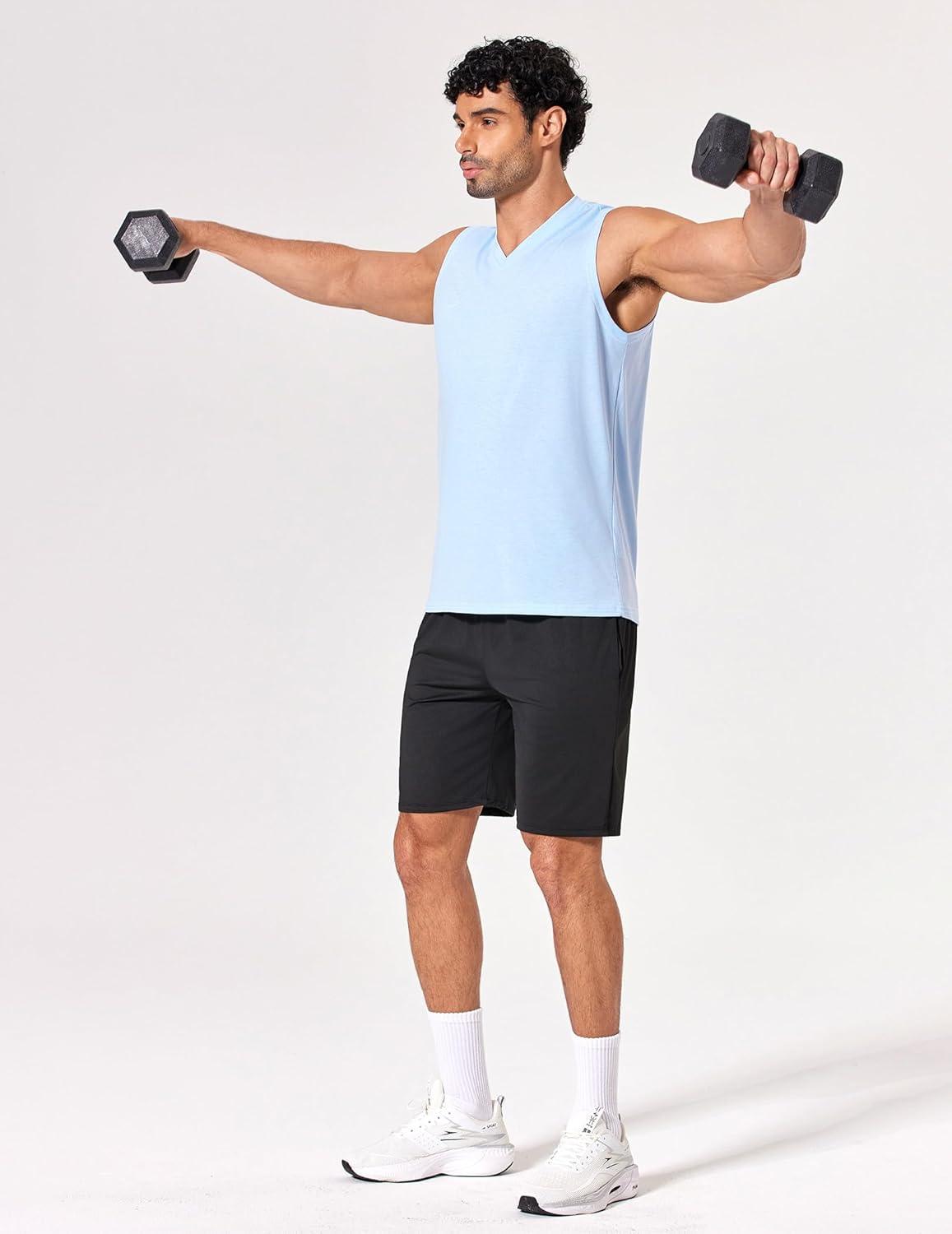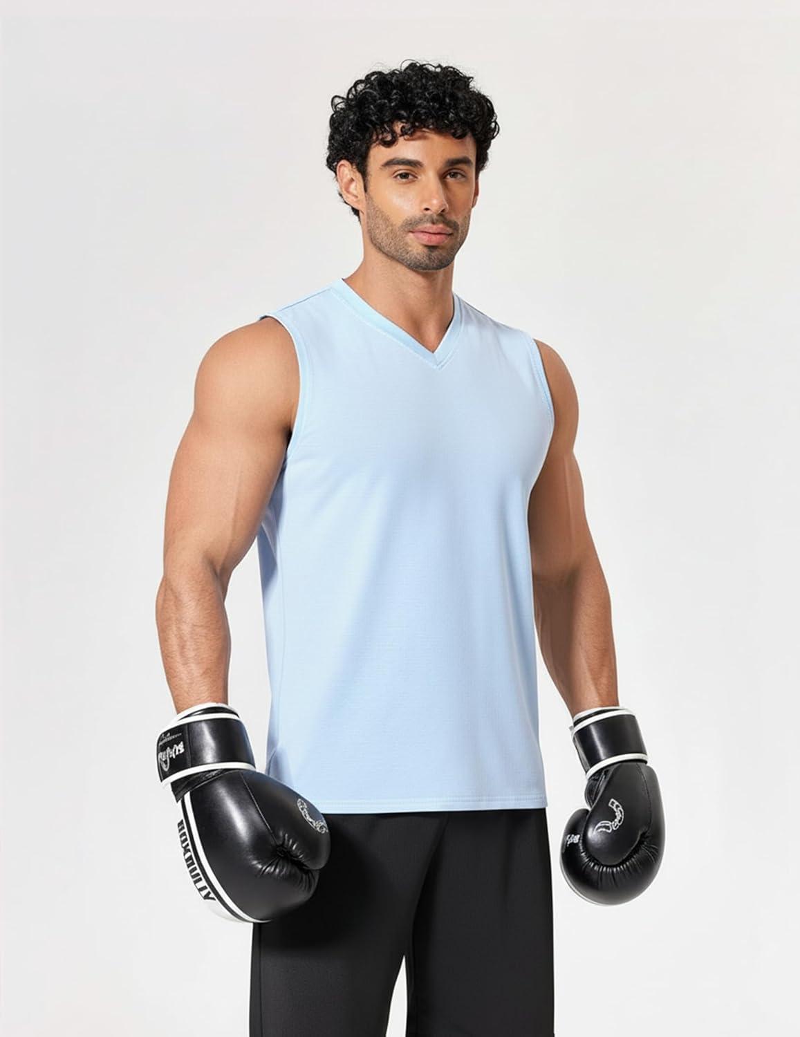 COOFANDY Men's Workout Tank Tops V Neck Sleeveless Shirts Quick Dry Athletic Gym Muscle T Shirt Lightweight Soft Tee(Light Blue)