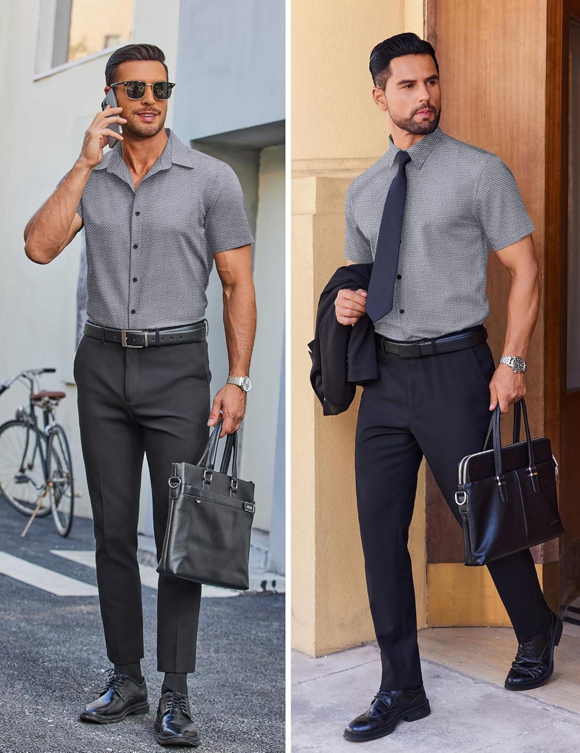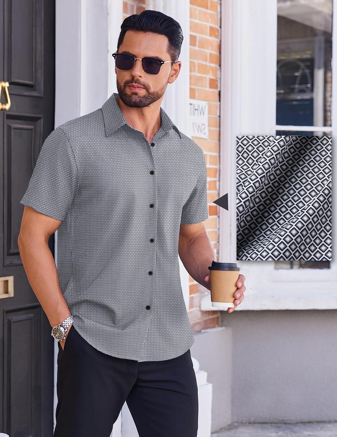 COOFANDY Mens Wrinkle Free Dress Shirt Polka Dot Short Sleeve Button Down Business Casual Shirts(Black-square)