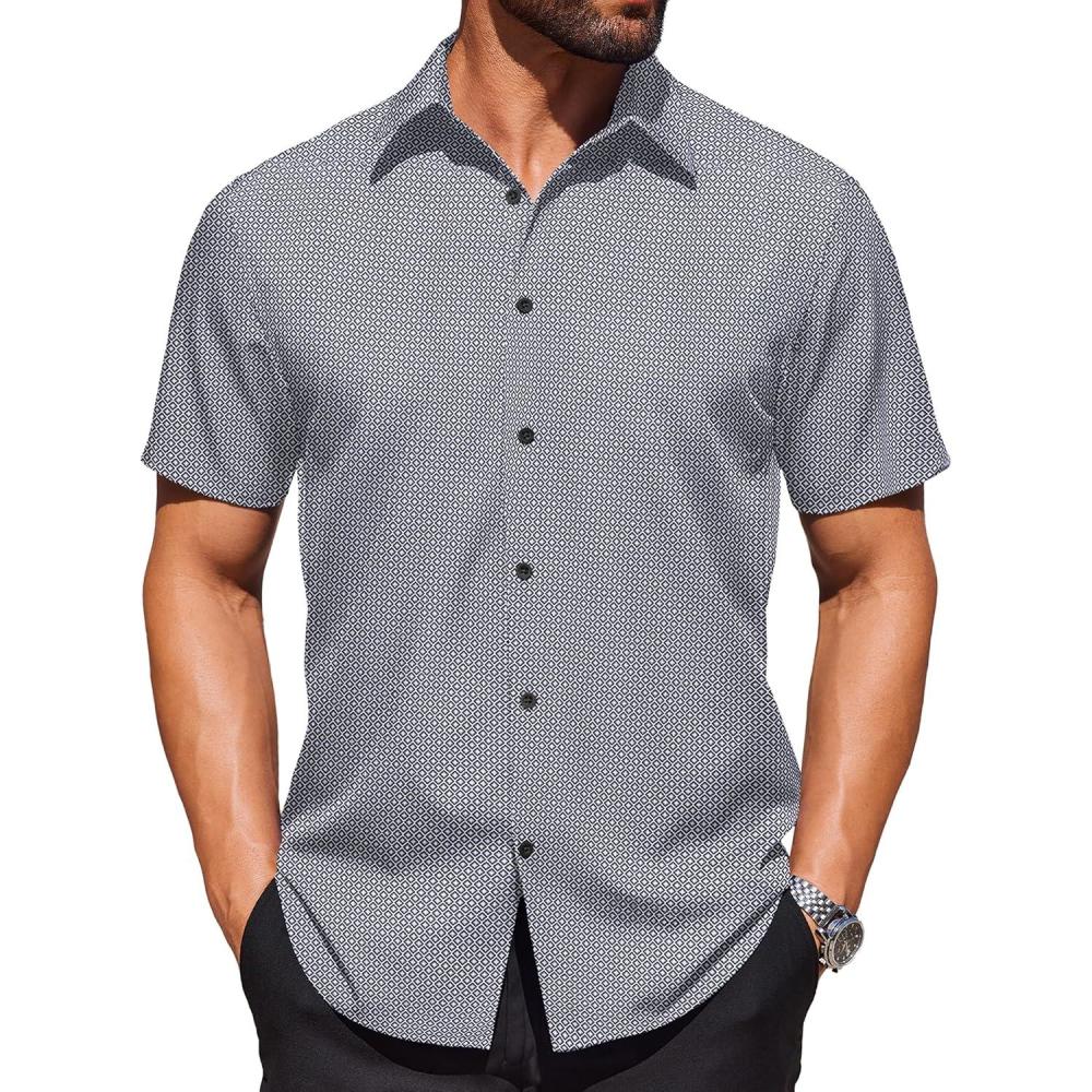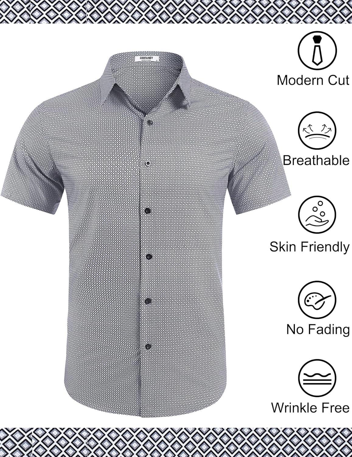 COOFANDY Mens Wrinkle Free Dress Shirt Polka Dot Short Sleeve Button Down Business Casual Shirts(Black-polka Dots)