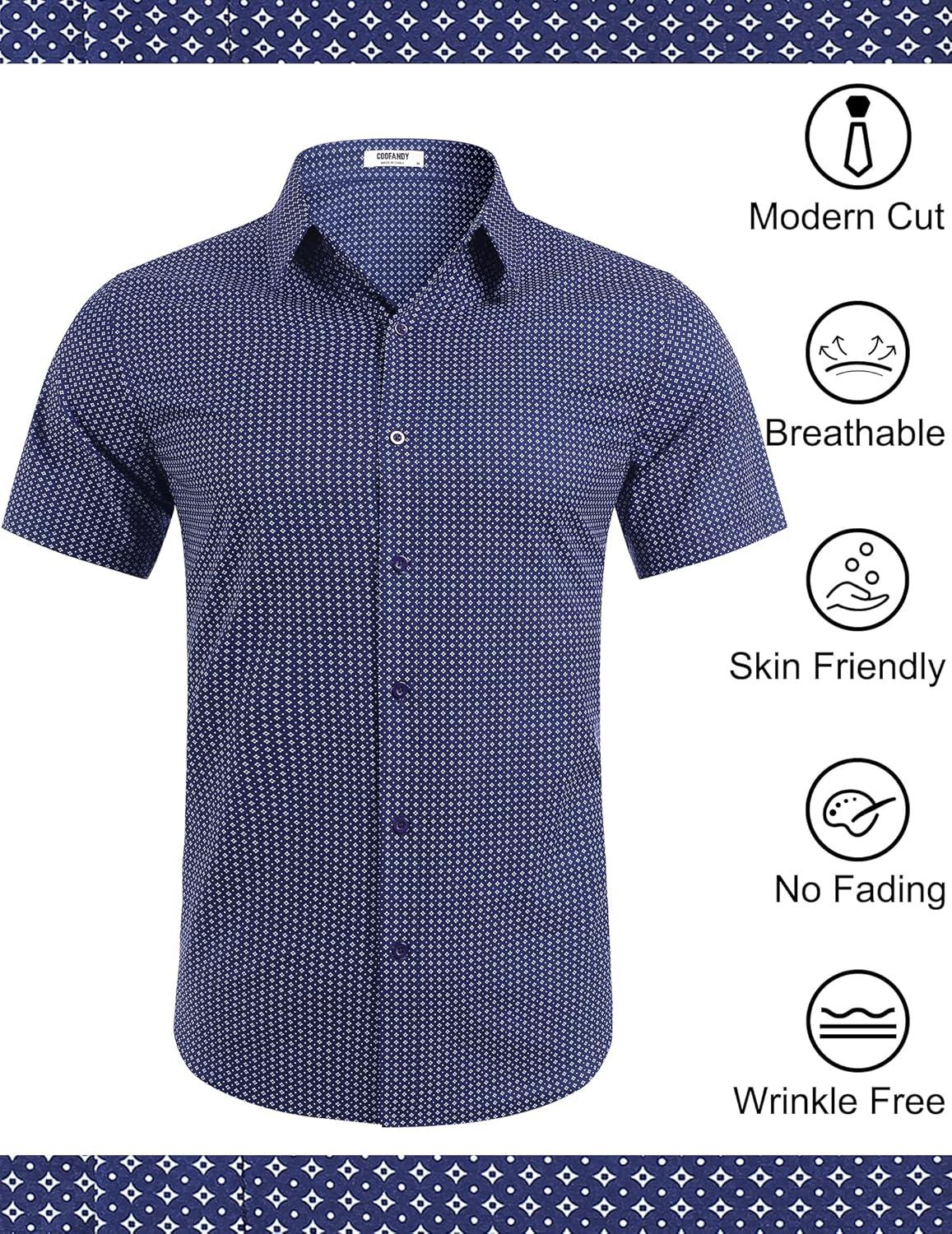 COOFANDY Mens Wrinkle Free Dress Shirt Polka Dot Short Sleeve Button Down Business Casual Shirts(Navy Blue-anchor)