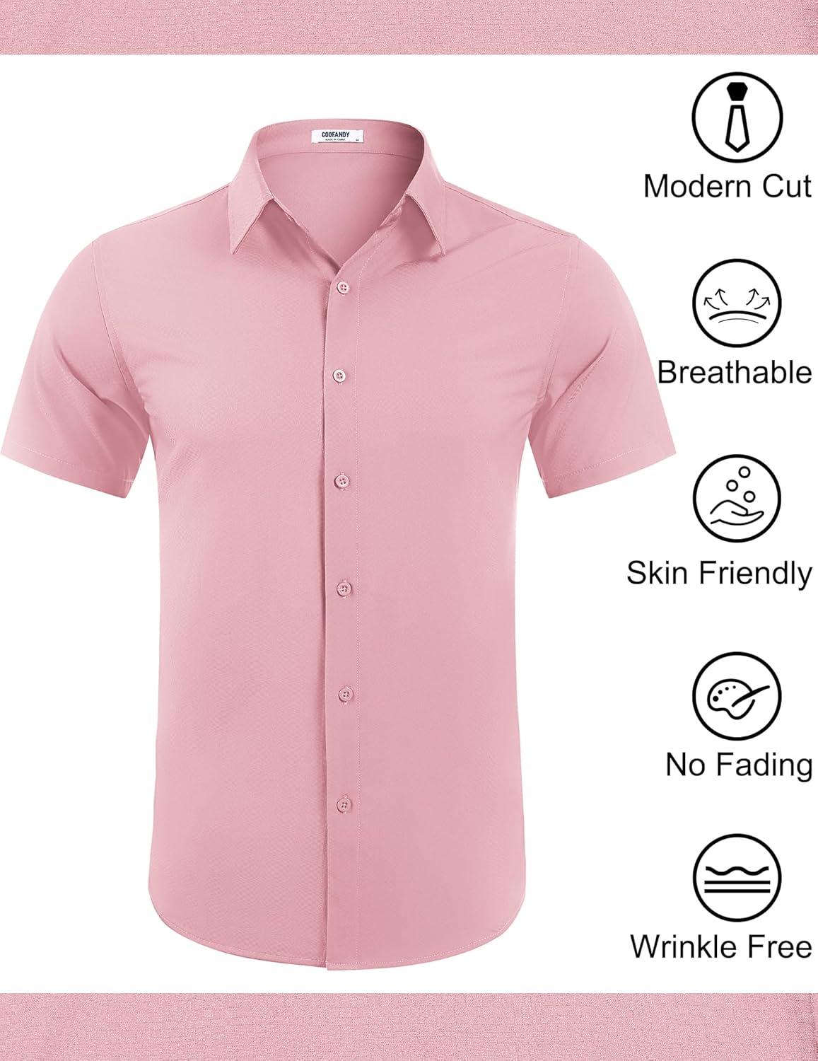 imageCOOFANDY Mens Wrinkle Free Dress Shirt Polka Dot Short Sleeve Button Down Business Casual ShirtsPink