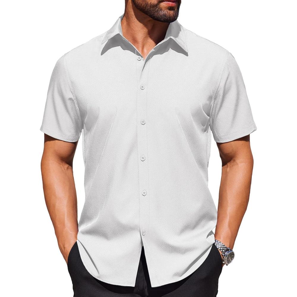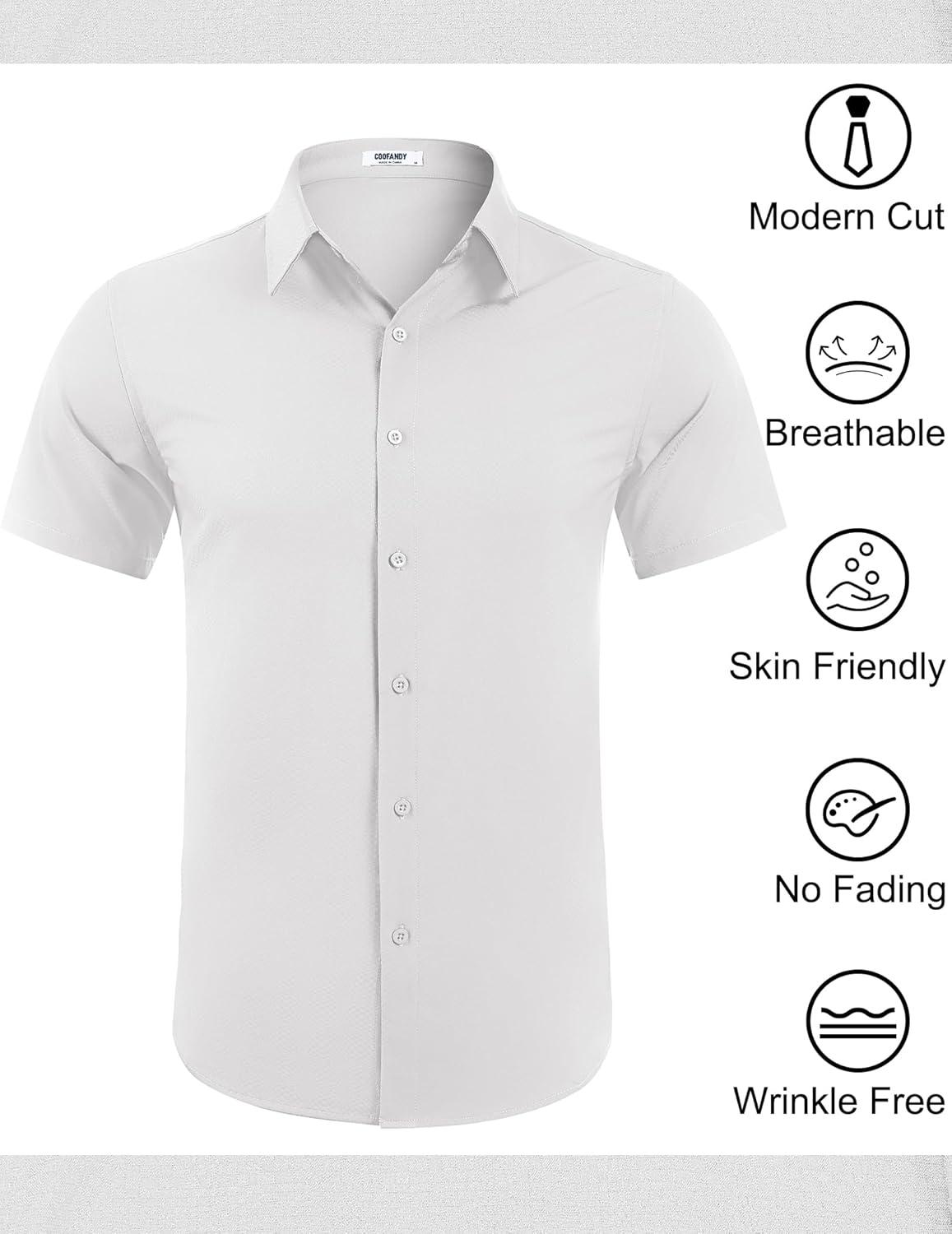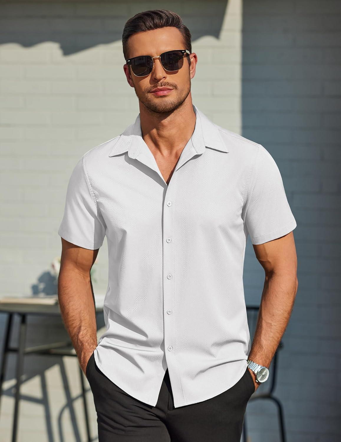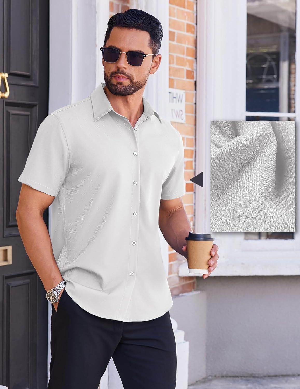 COOFANDY Mens Wrinkle Free Dress Shirt Polka Dot Short Sleeve Button Down Business Casual Shirts(White)