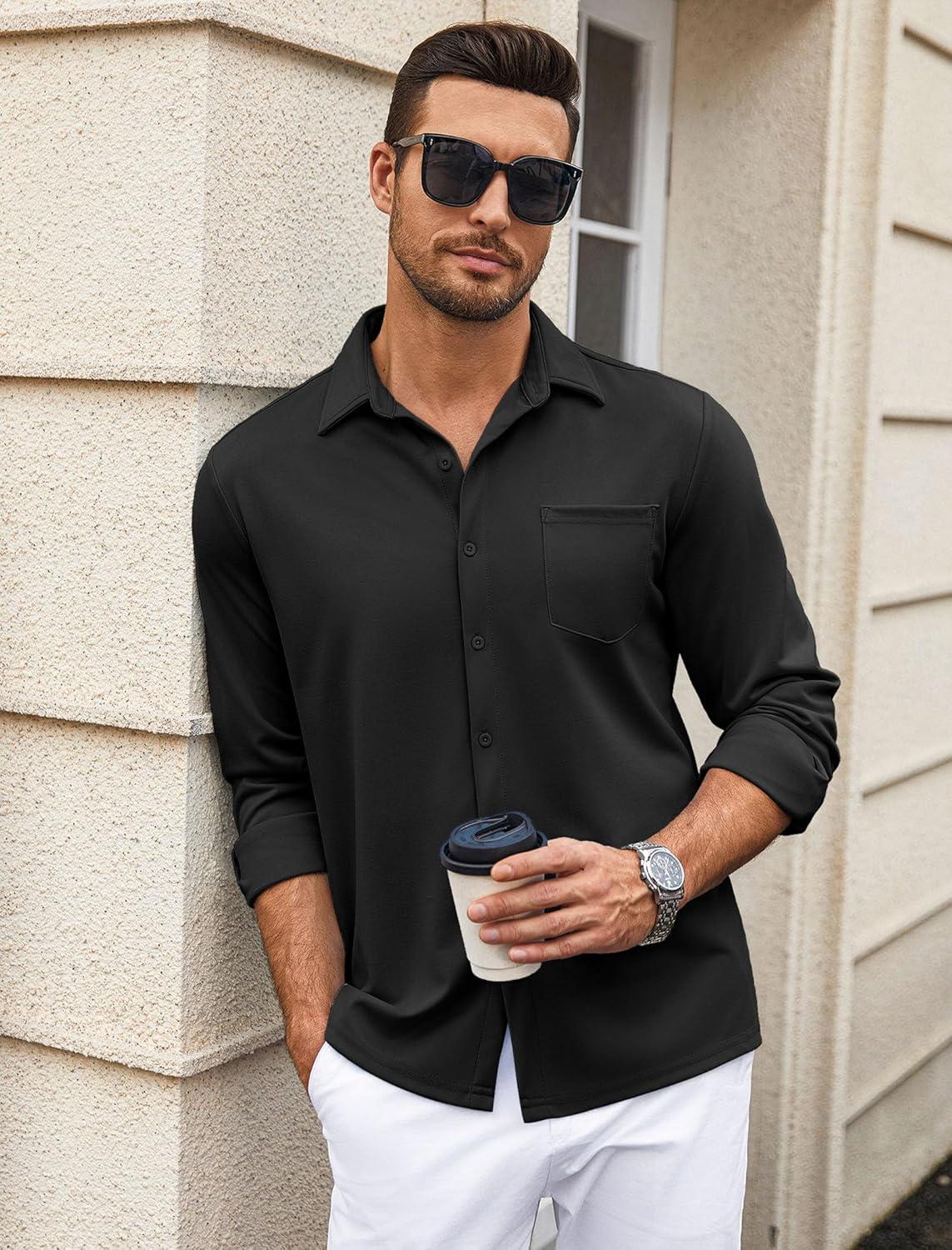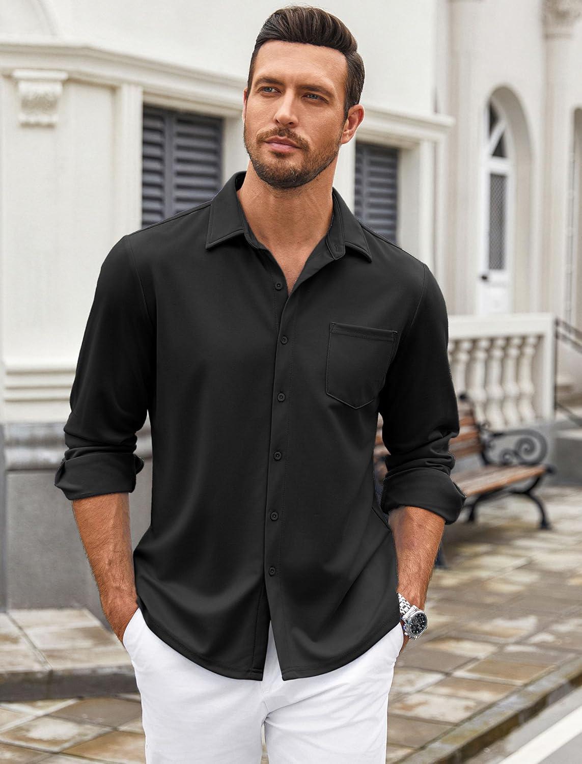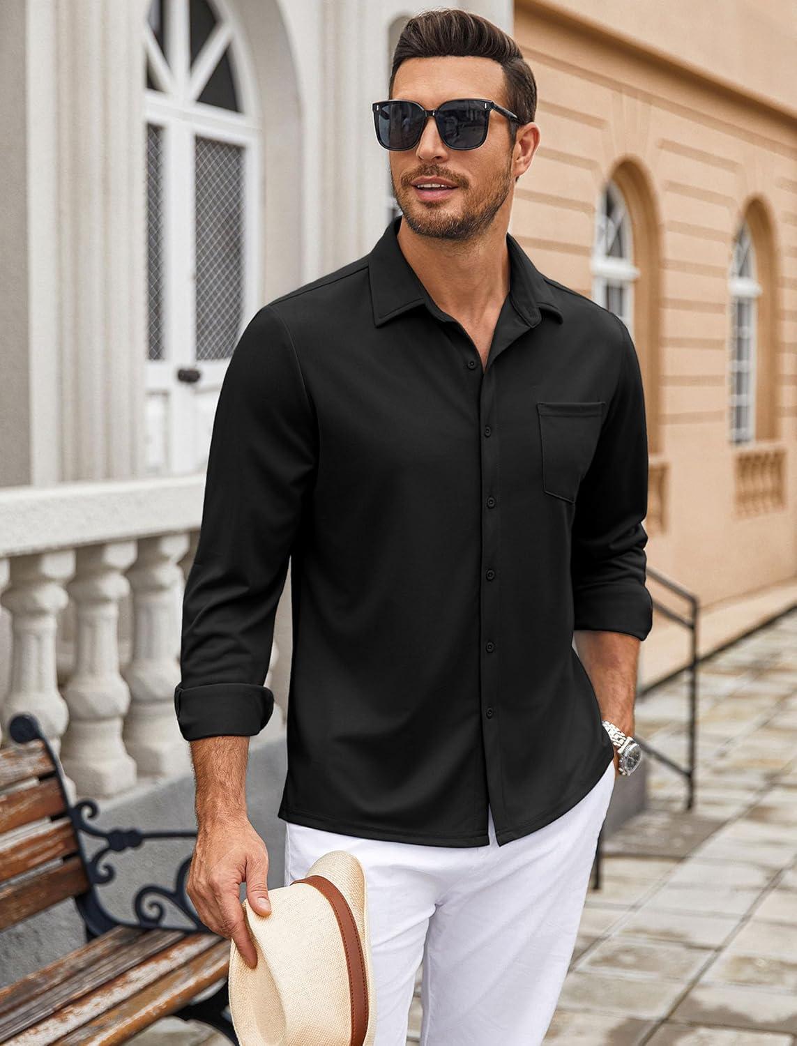 Get up to 70% off on COOFANDY Mens Wrinkle Free Dress Shirts Long Sleeve Untucked Shirts Casual Button Down Shirts(Black) styles during our end-of-season clearance event.