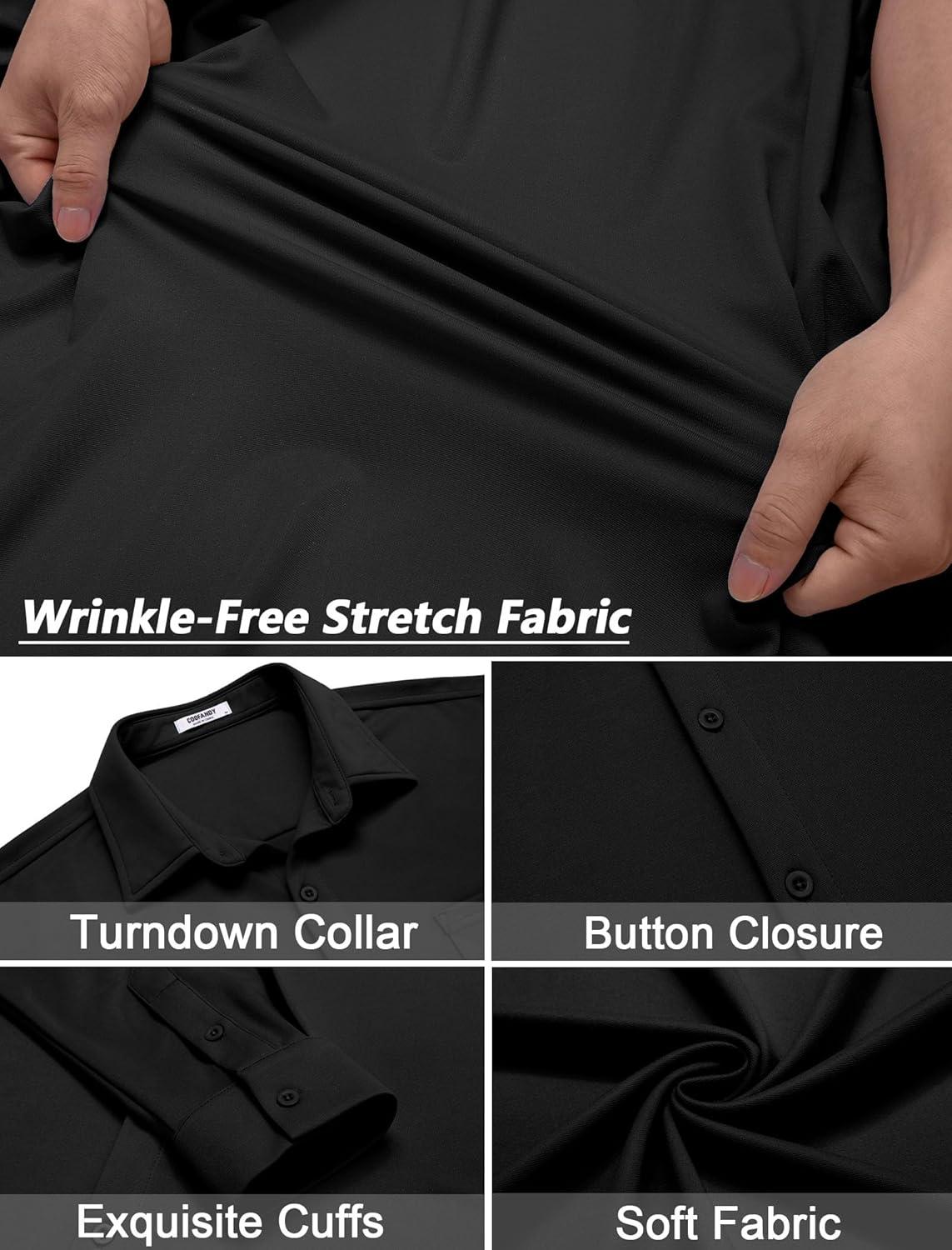 COOFANDY Mens Wrinkle Free Dress Shirts Long Sleeve Untucked Shirts Casual Button Down Shirts(Black)