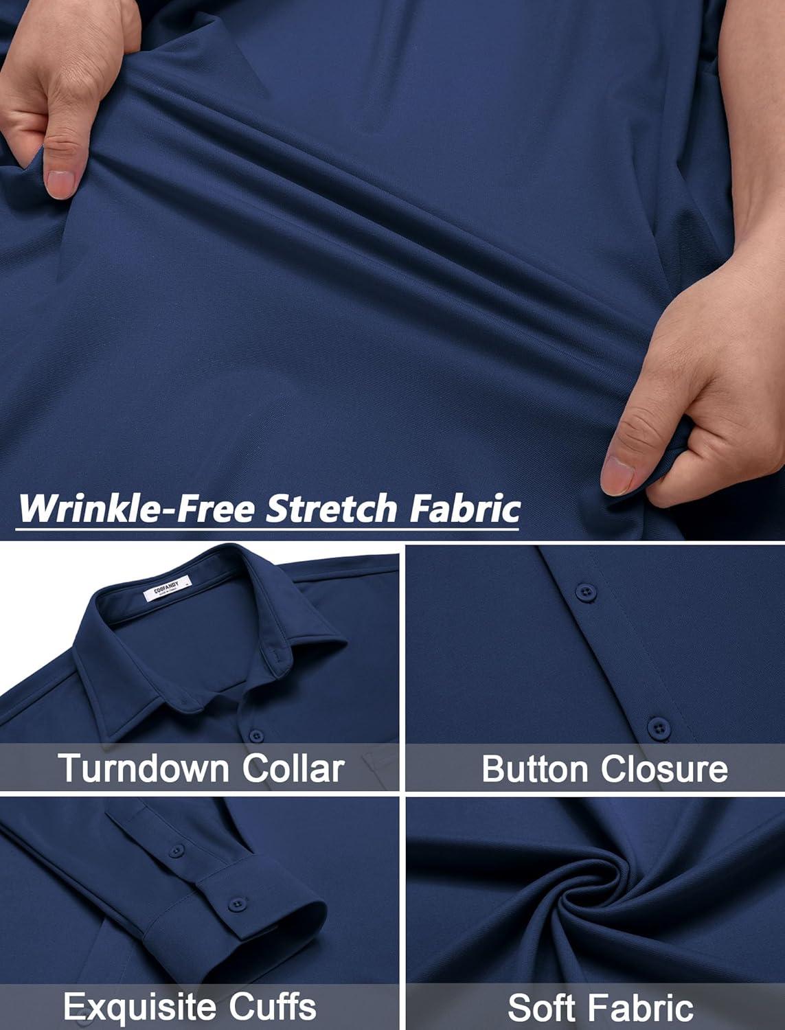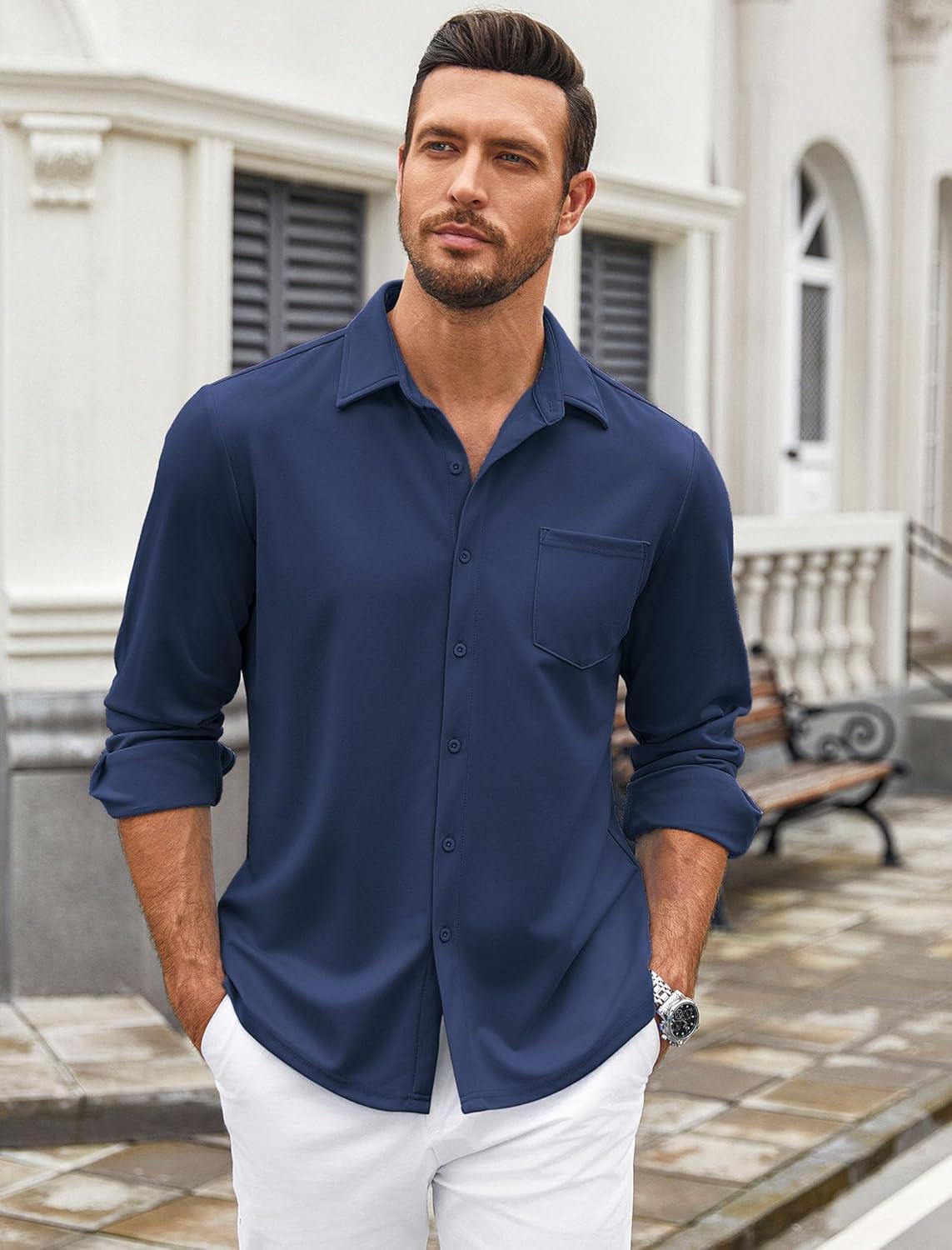 COOFANDY Mens Wrinkle Free Dress Shirts Long Sleeve Untucked Shirts Casual Button Down Shirts(Dark Blue)