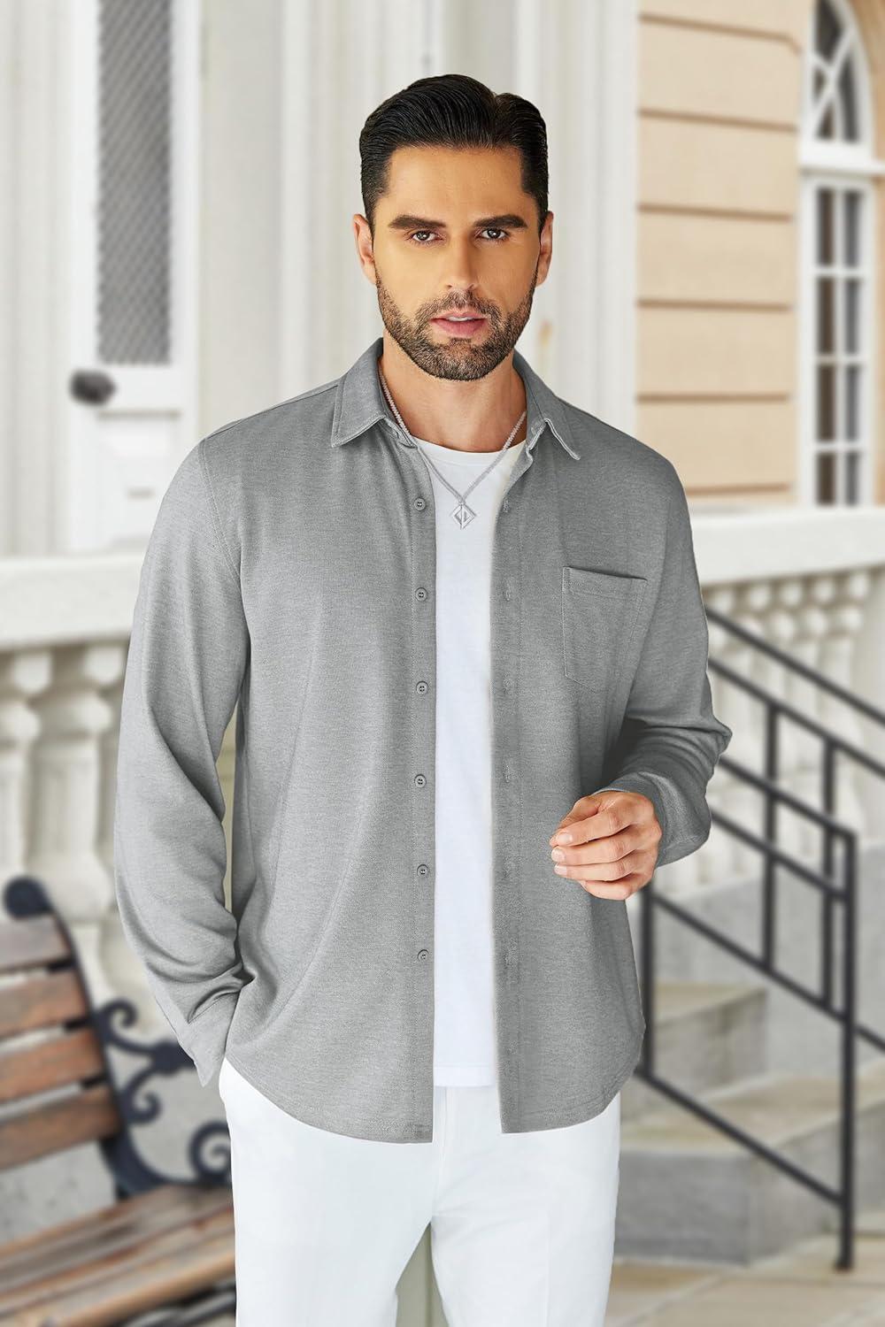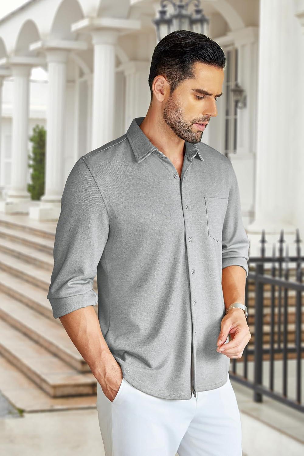 COOFANDY Men's Wrinkle Free Shirt Casual Button Down Long Sleeve Dress Shirts(Texture Grey)