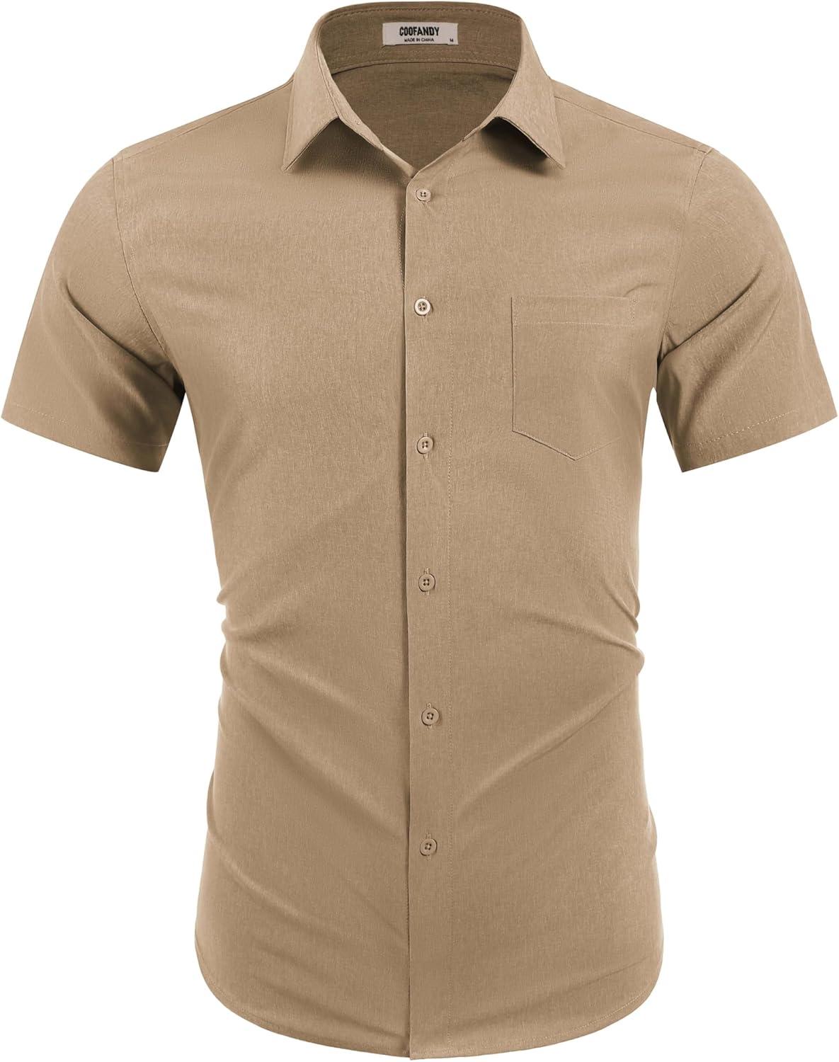 COOFANDY Mens Wrinkle Free Shirts 2025 Short Sleeve Casual Button Down Summer Dress Shirts(Camel)