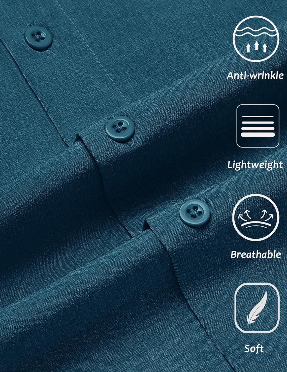 COOFANDY Mens Wrinkle Free Shirts 2025 Short Sleeve Casual Button Down Summer Dress Shirts(Deep Blue)