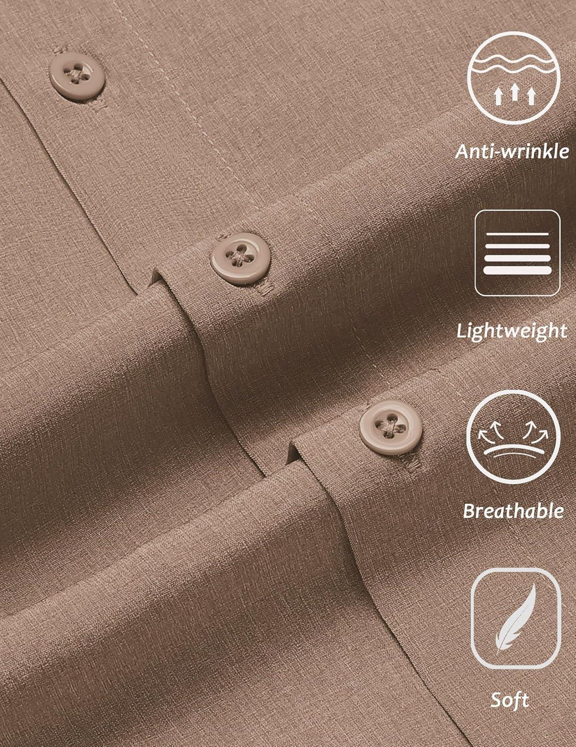 COOFANDY Mens Wrinkle Free Shirts 2025 Short Sleeve Casual Button Down Summer Dress Shirts(Light Brown)