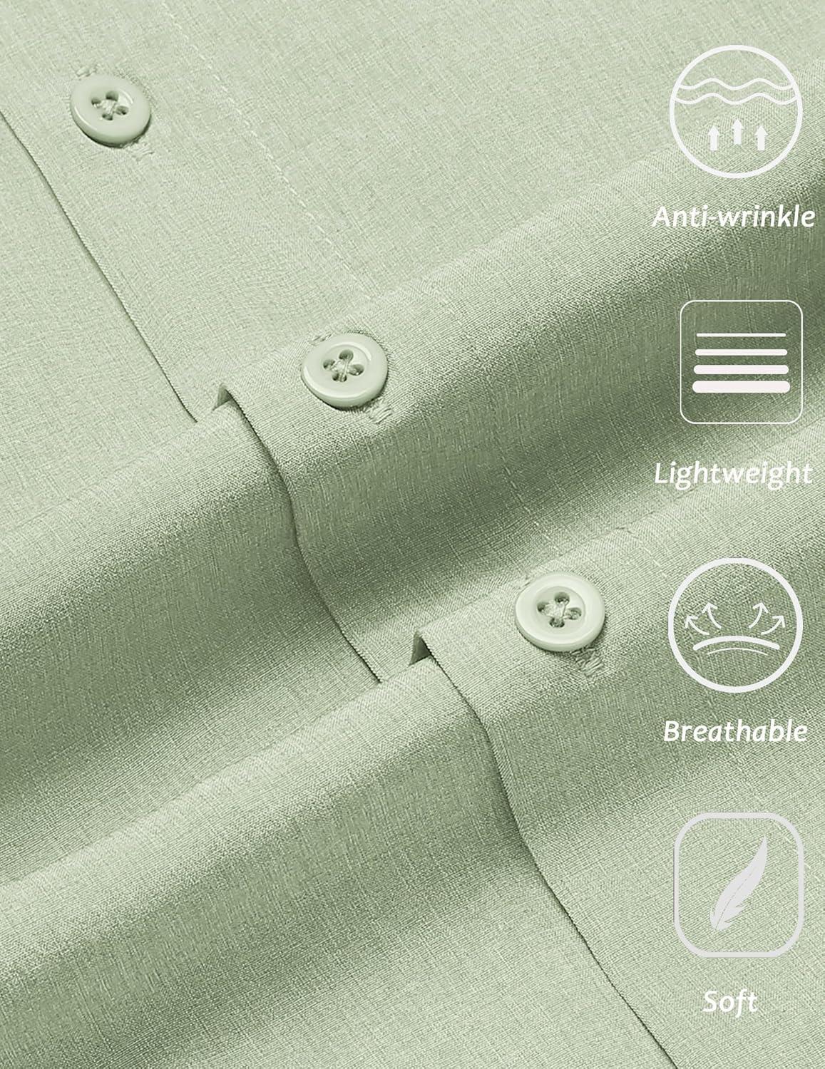 COOFANDY Mens Wrinkle Free Shirts 2025 Short Sleeve Casual Button Down Summer Dress Shirts(Light Green)