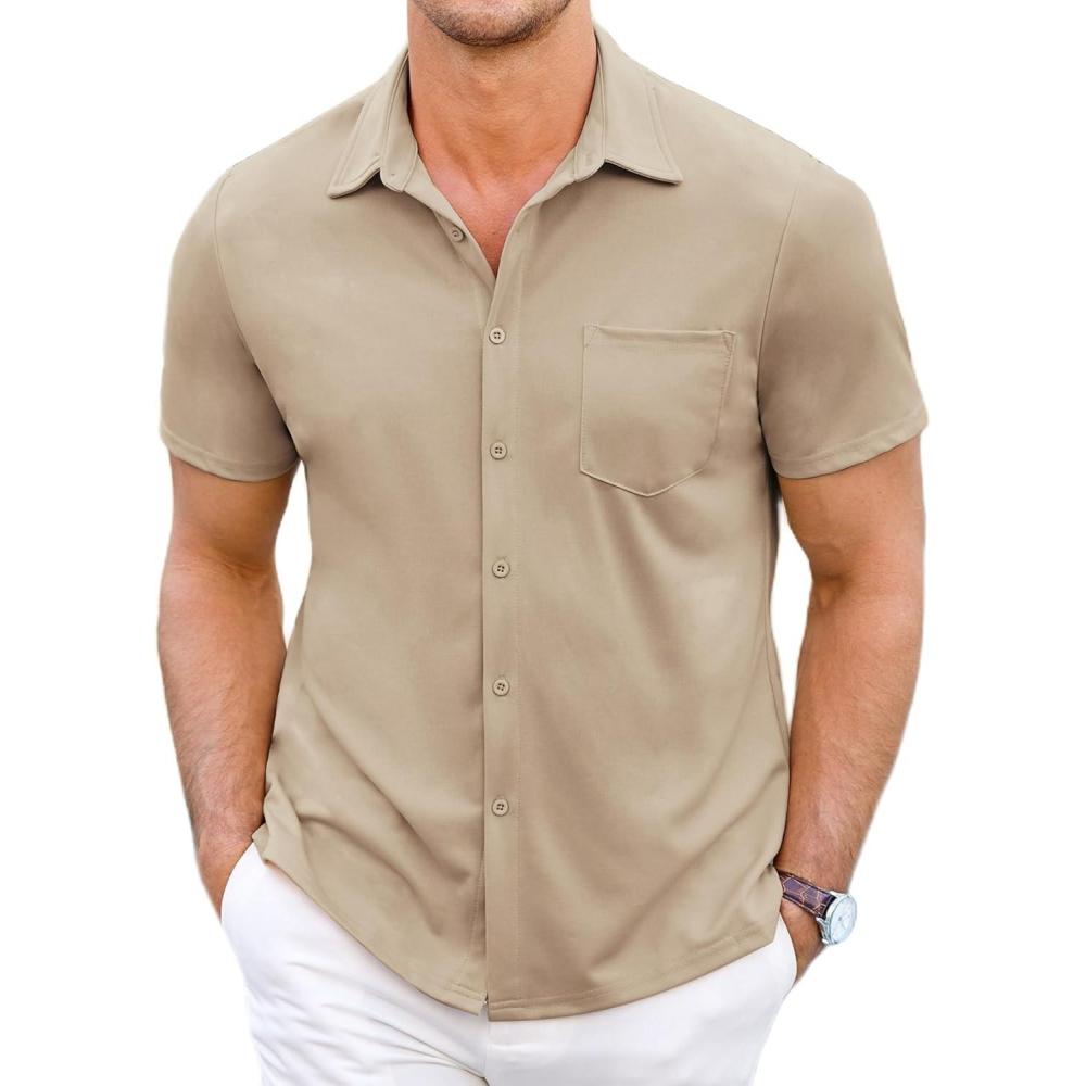 COOFANDY Men’s Wrinkle Free Short Sleeve Shirt Casual Button Down Stretch Dress Shirts Summer Beach Shirt