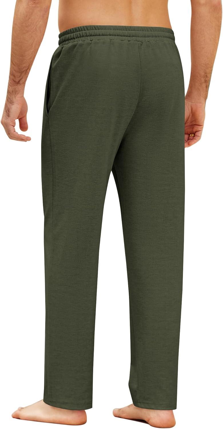 COOFANDY Men's Yoga Pants Casual Elastic Waist Drawstring Jogger Sweatpants Open Bottom Lounge Pants(Dark Green)