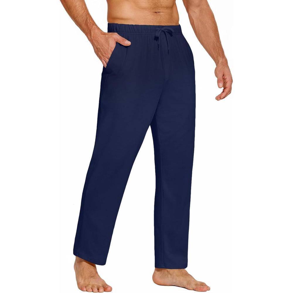 COOFANDY Mens Yoga Sweatpants Casual Open Bottom Pants Lightweight Jogger Track Pants with Pockets(Navy Blue)