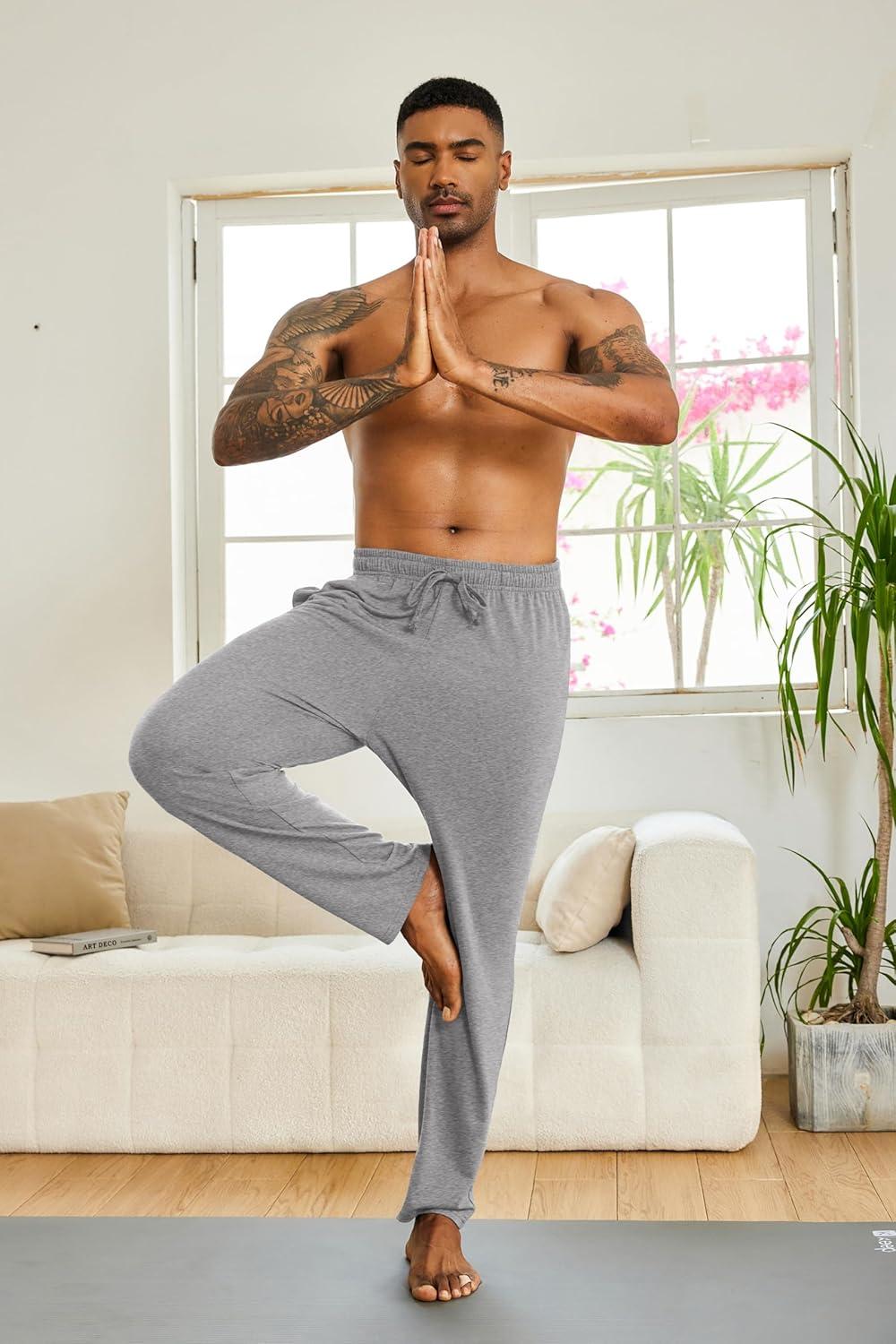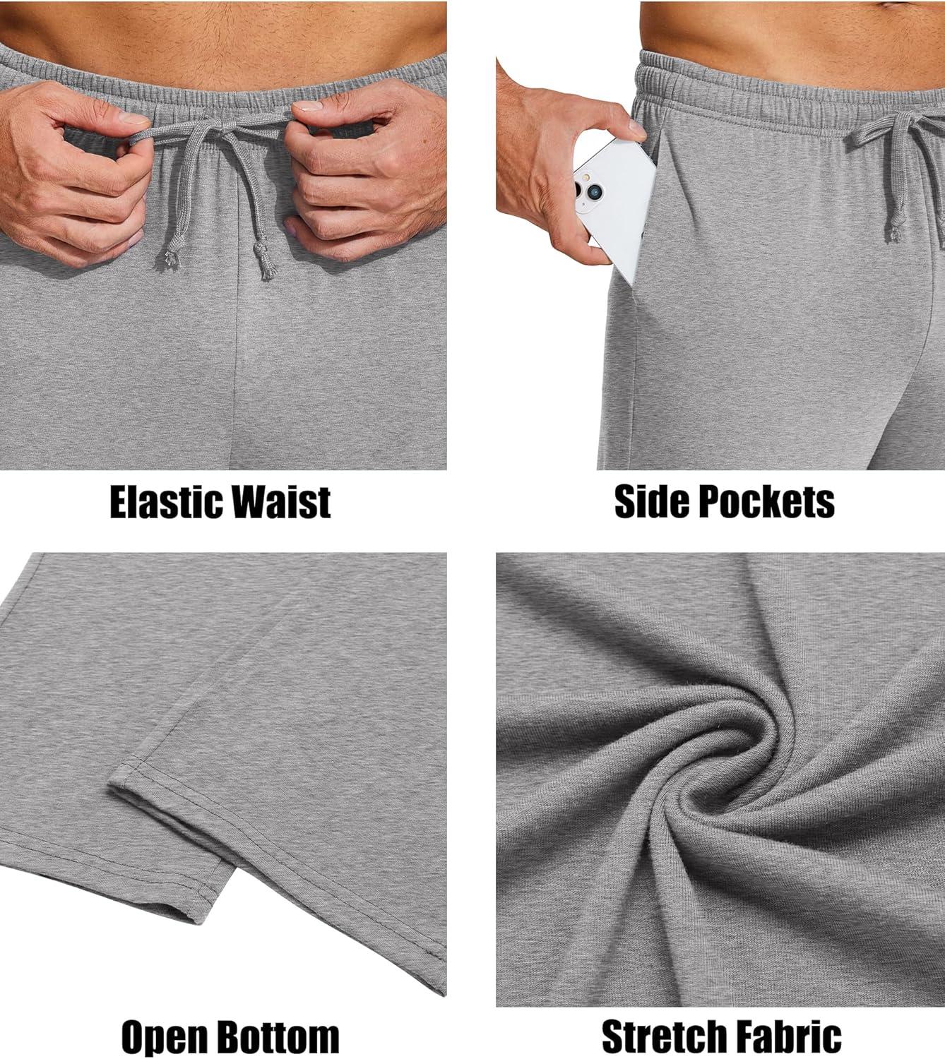 COOFANDY Men's Yoga Sweatpants Lightweight Open Bottom Lounge Pants Casual Drawstring Sweat Pants with Pockets(Light Grey)