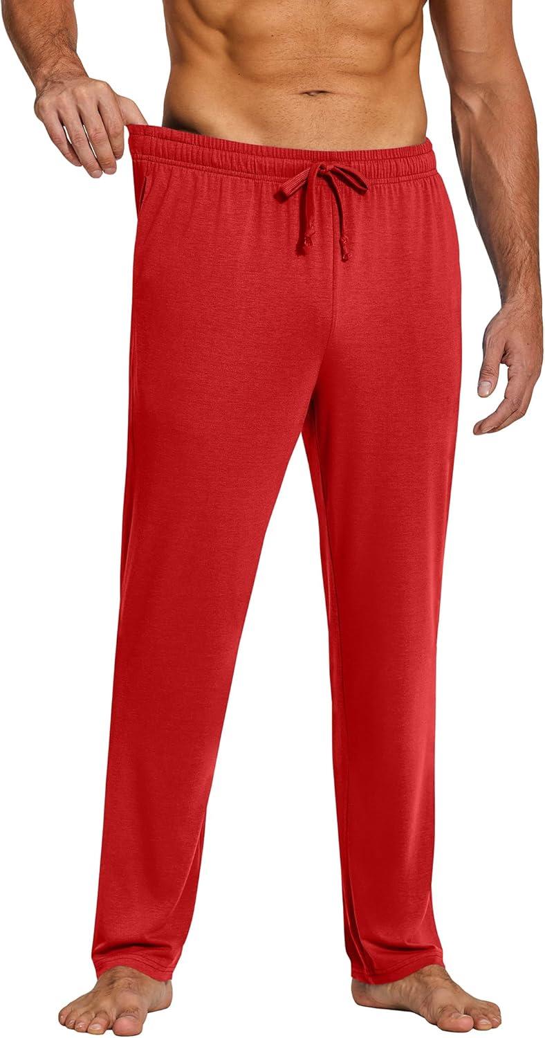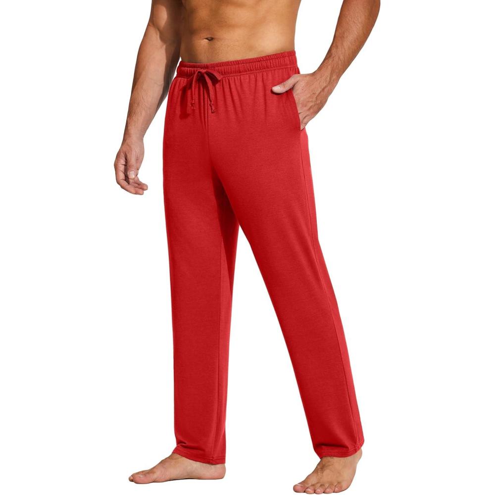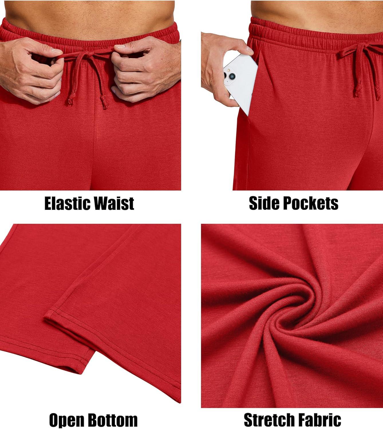 COOFANDY Men's Yoga Sweatpants Lightweight Open Bottom Lounge Pants Casual Drawstring Sweat Pants with Pockets(Red)