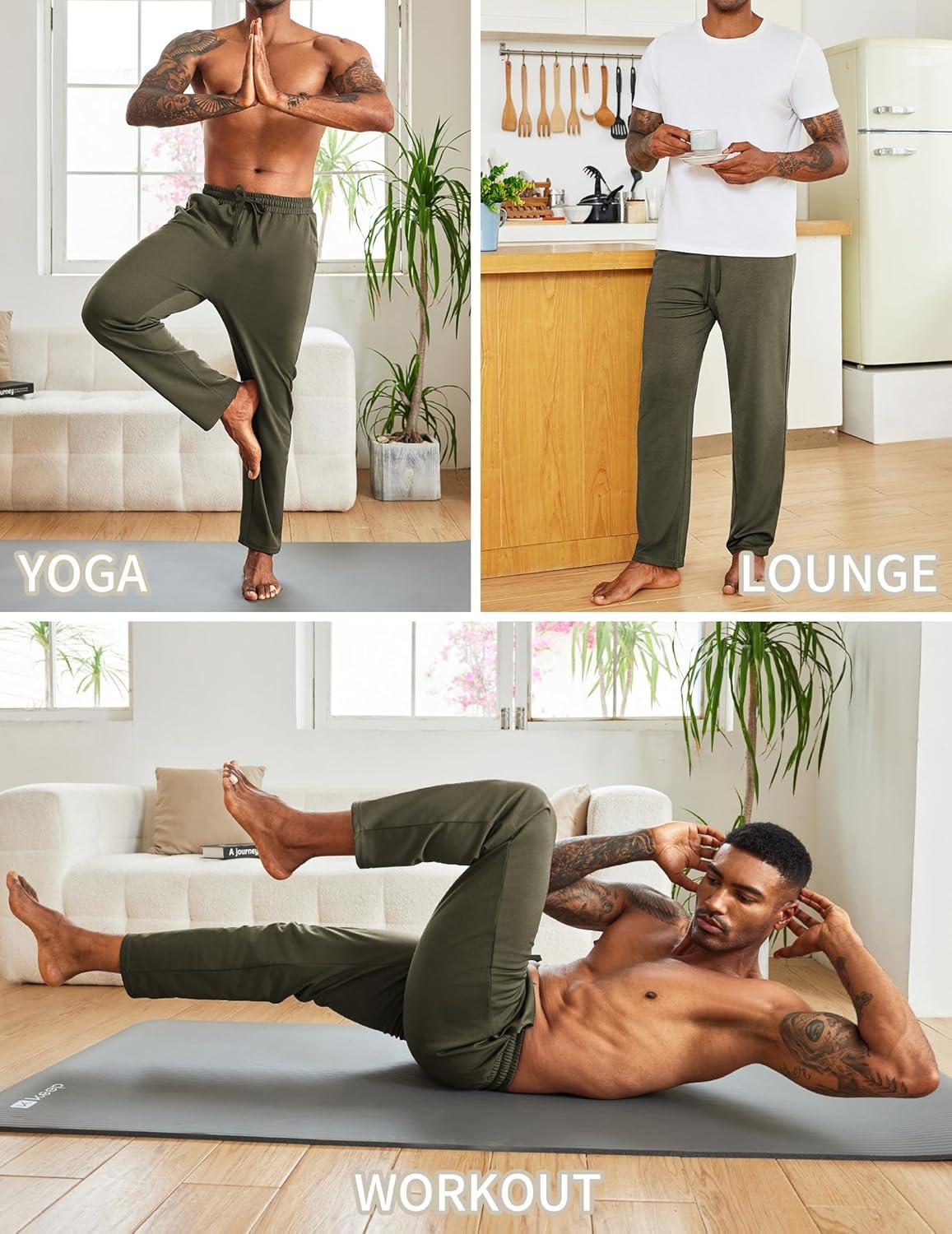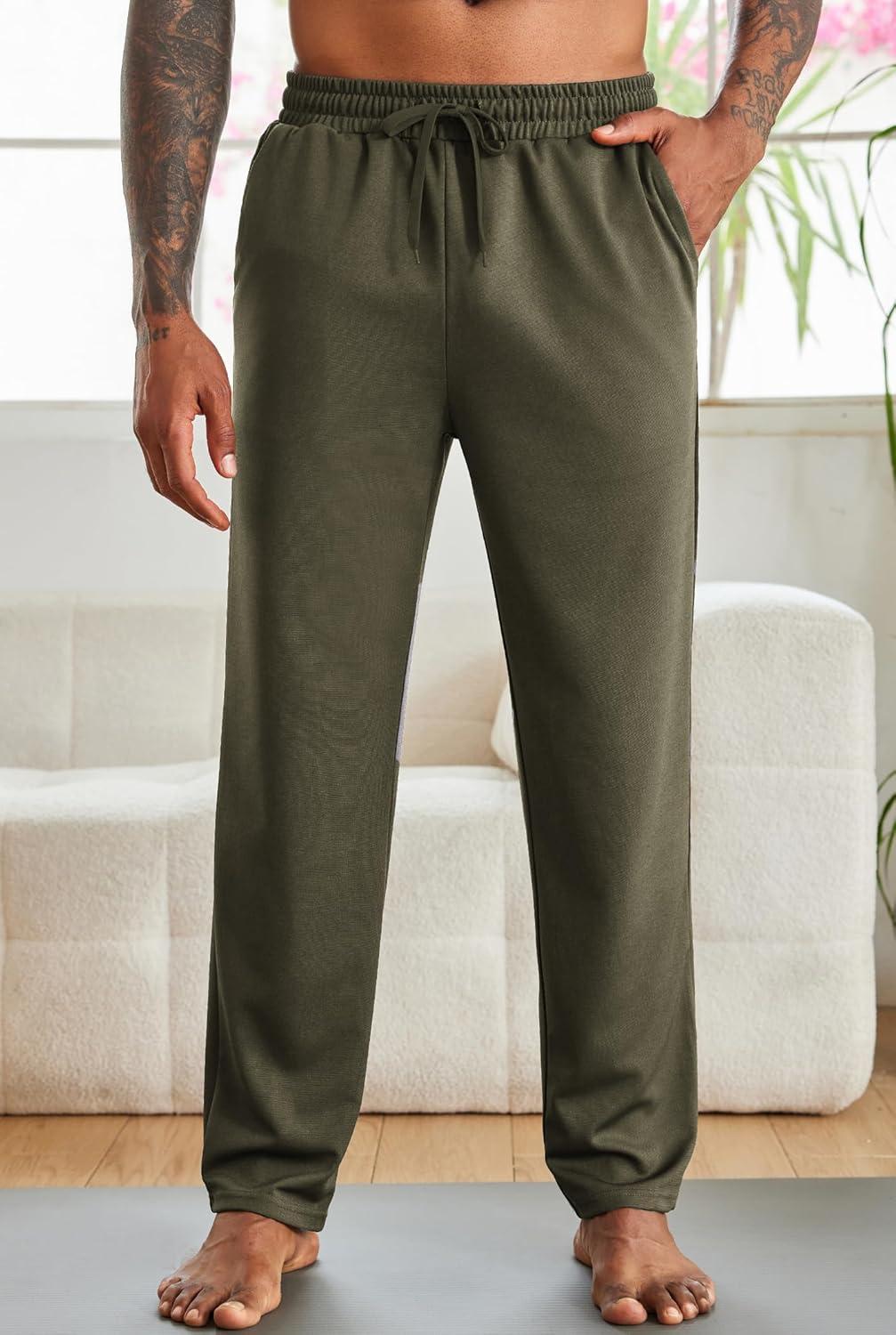 COOFANDY Men's Yoga Sweatpants Open Bottom Lightweight Sweat Pants Drawstring Athletic Lounge Pants with Pockets(Army Green)