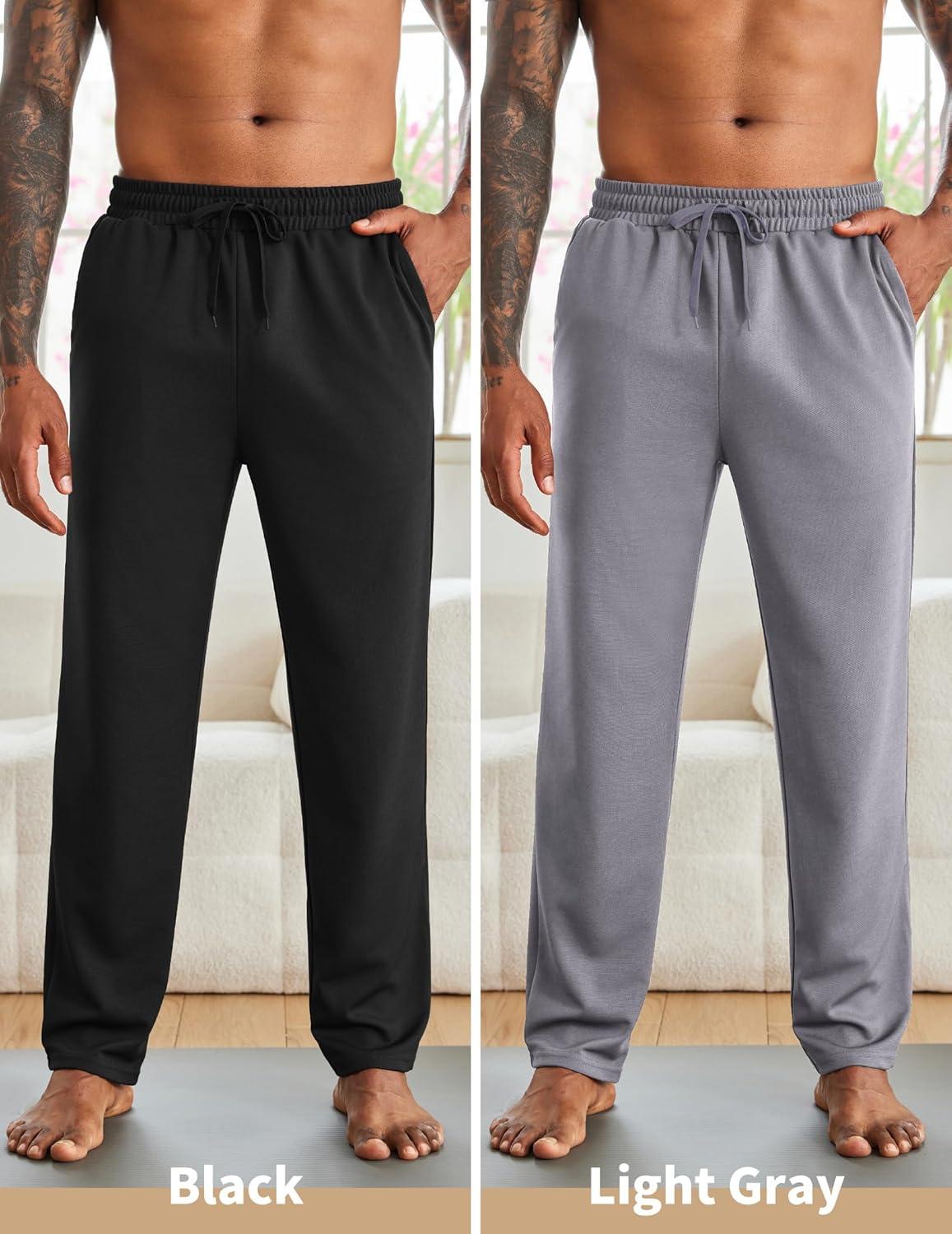 COOFANDY Men's Yoga Sweatpants Open Bottom Lightweight Sweat Pants Drawstring Athletic Lounge Pants with Pockets(Black & Light Gray)