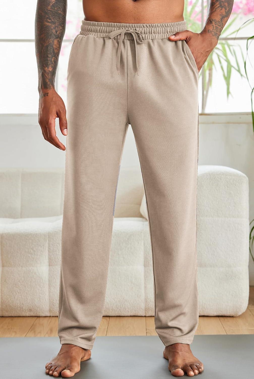 COOFANDY Men's Yoga Sweatpants Open Bottom Lightweight Sweat Pants Drawstring Athletic Lounge Pants with Pockets(Champagne)