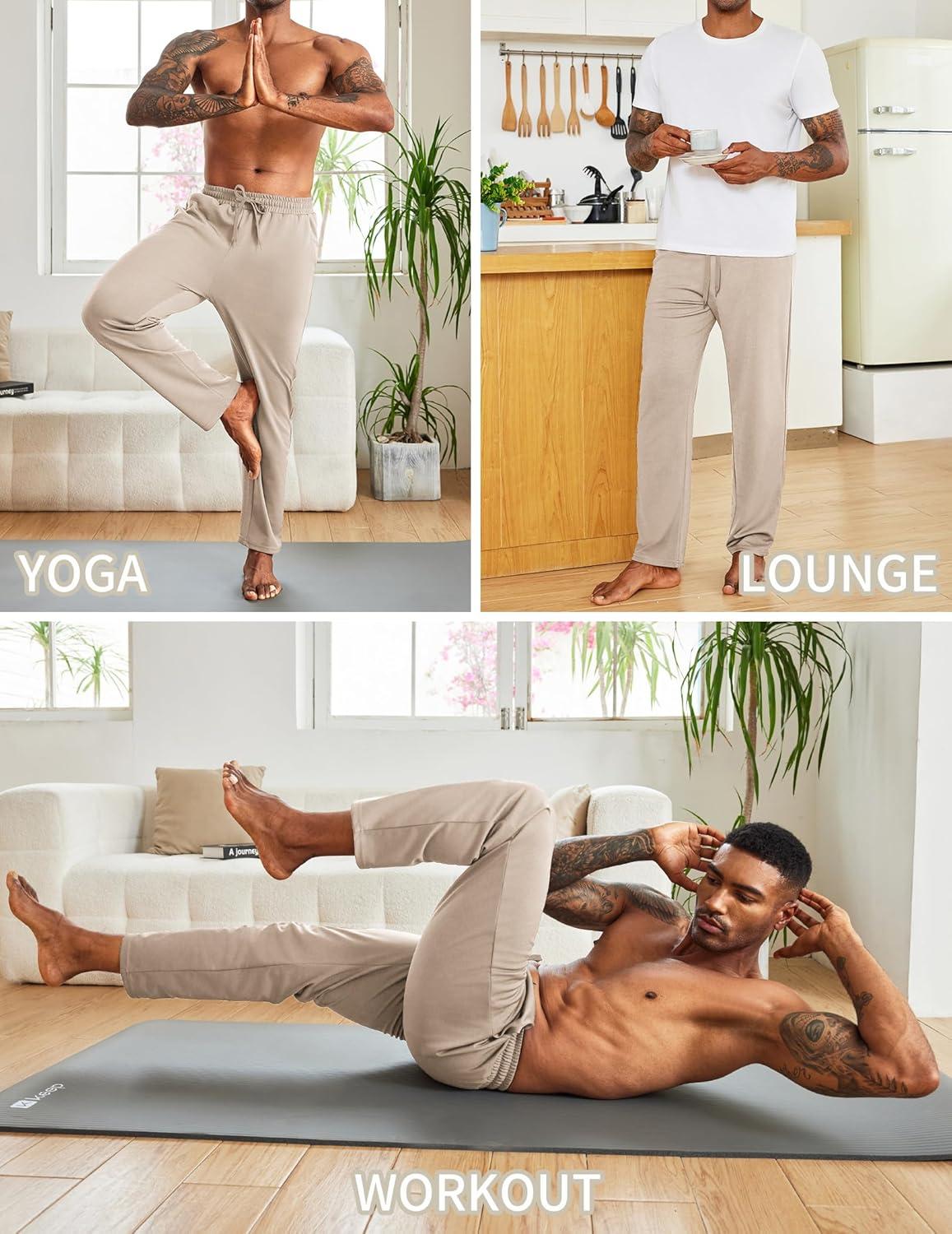 imageCOOFANDY Mens Yoga Sweatpants Open Bottom Lightweight Sweat Pants Drawstring Athletic Lounge Pants with PocketsChampagne