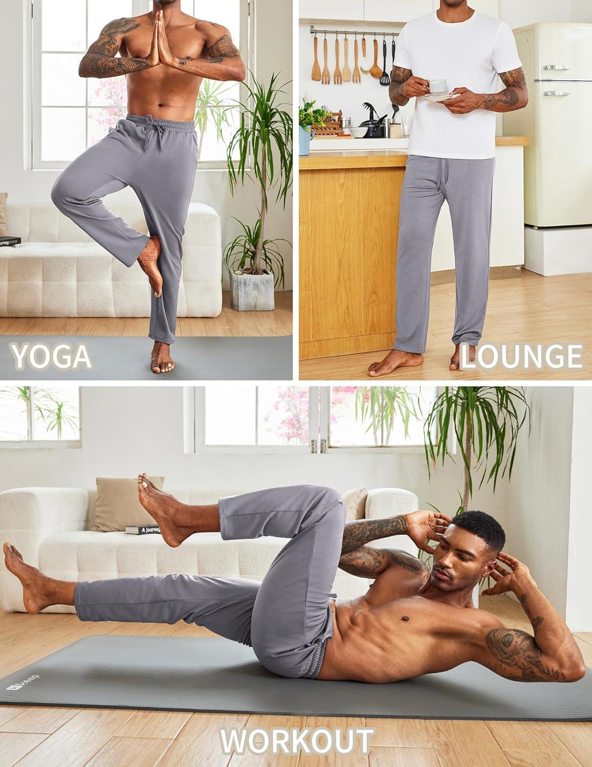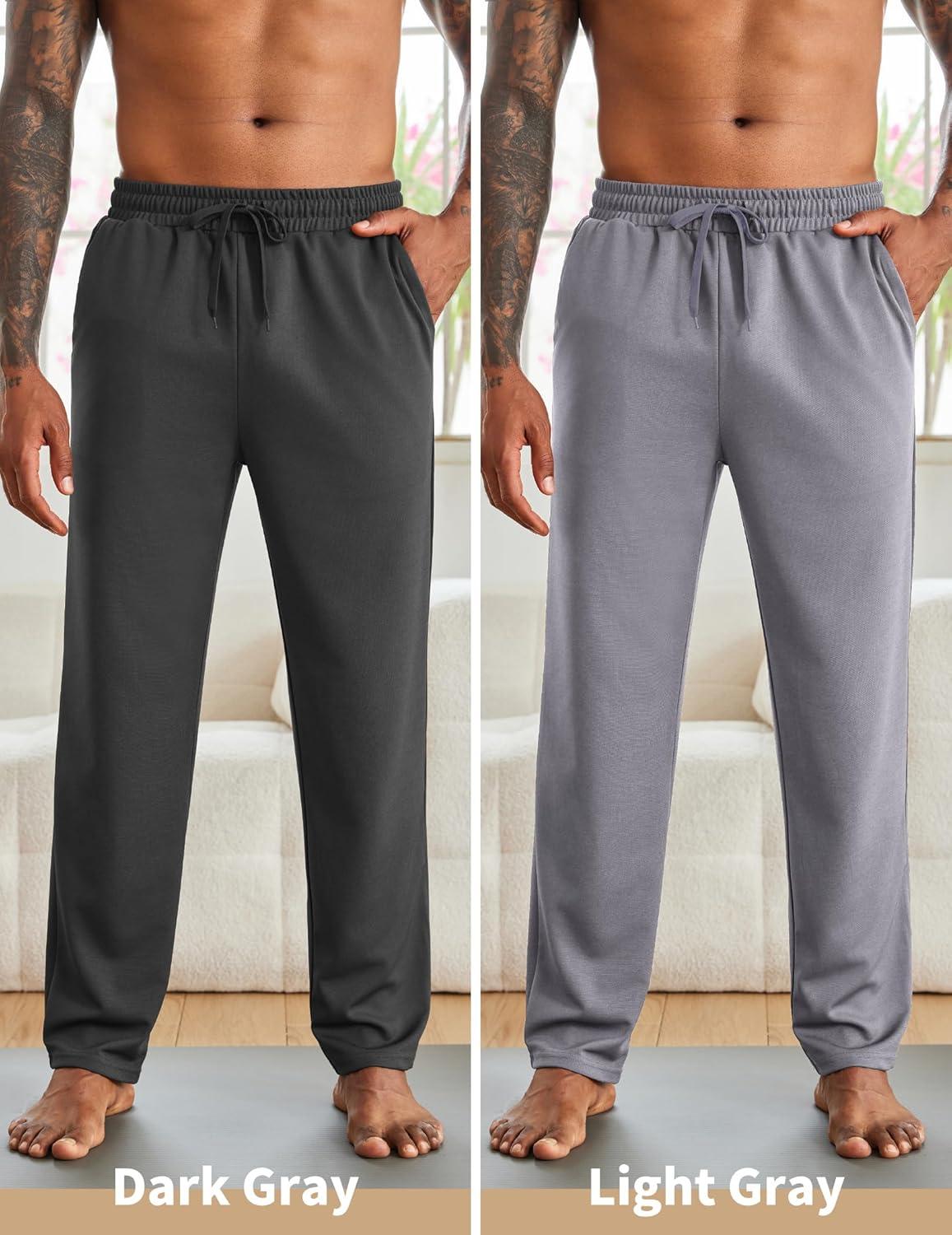 COOFANDY Men's Yoga Sweatpants Open Bottom Lightweight Sweat Pants Drawstring Athletic Lounge Pants with Pockets(Dark Gray & Light Gray)