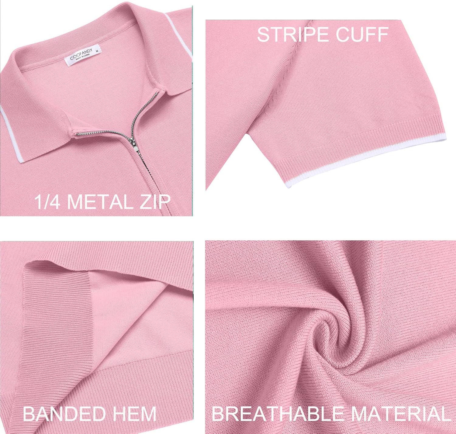 COOFANDY Men's Zipper Polo Shirt Casual Knit Short Sleeve Polo T Shirt Classic Fit Shirts(Bright Pink)