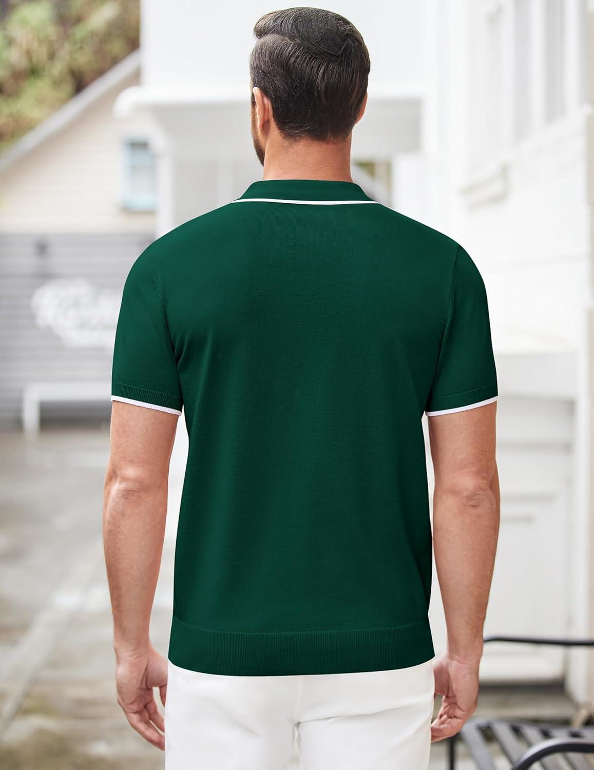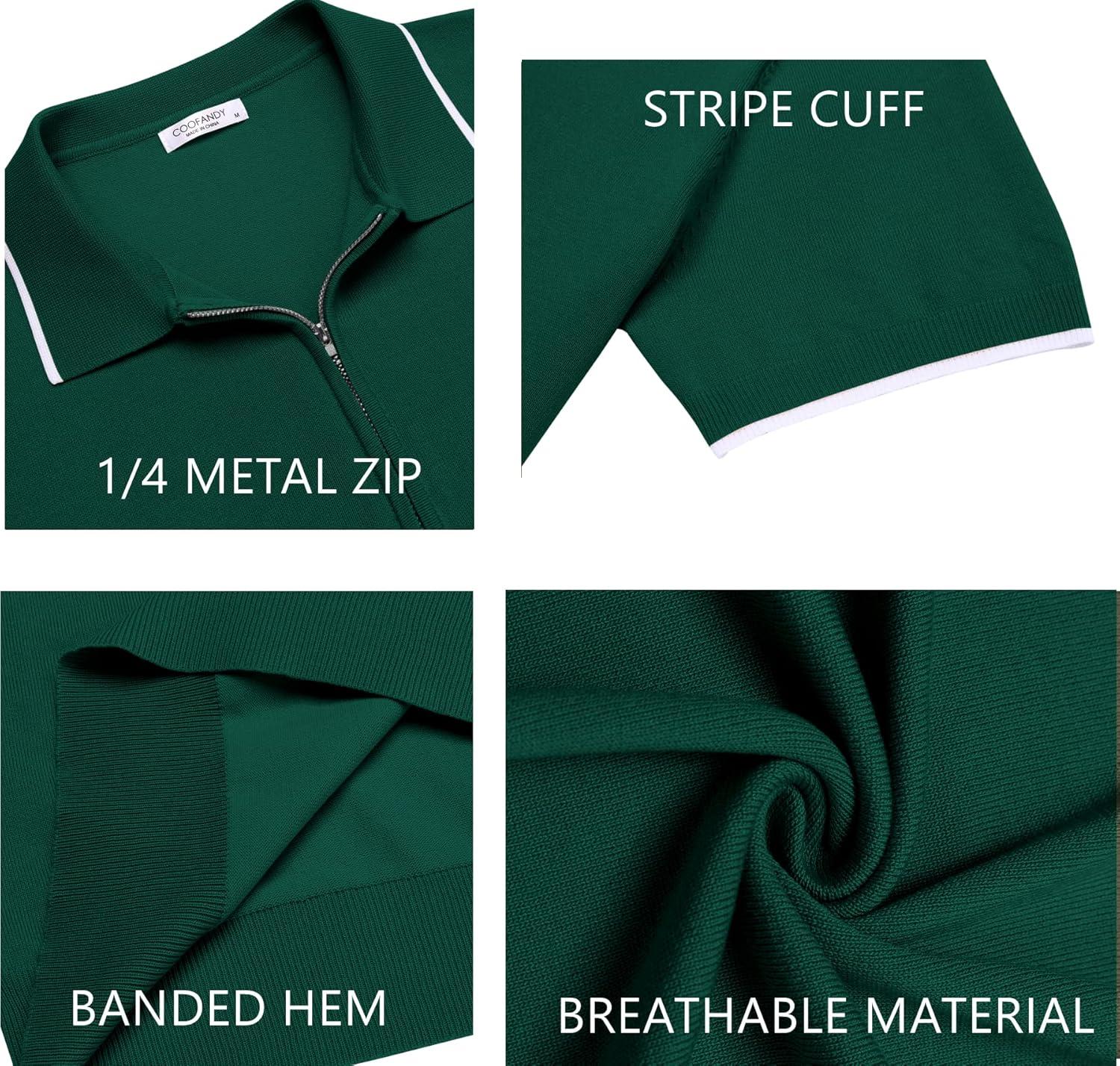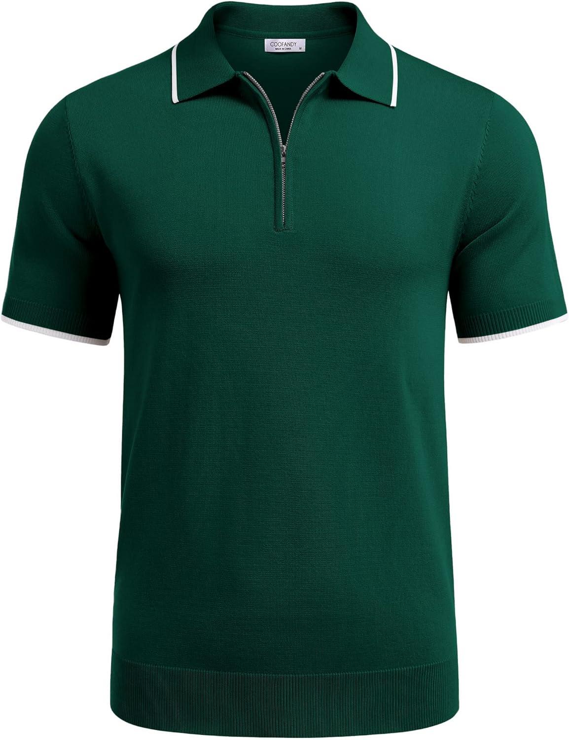 COOFANDY Men's Zipper Polo Shirt Casual Knit Short Sleeve Polo T Shirt Classic Fit Shirts(Green)