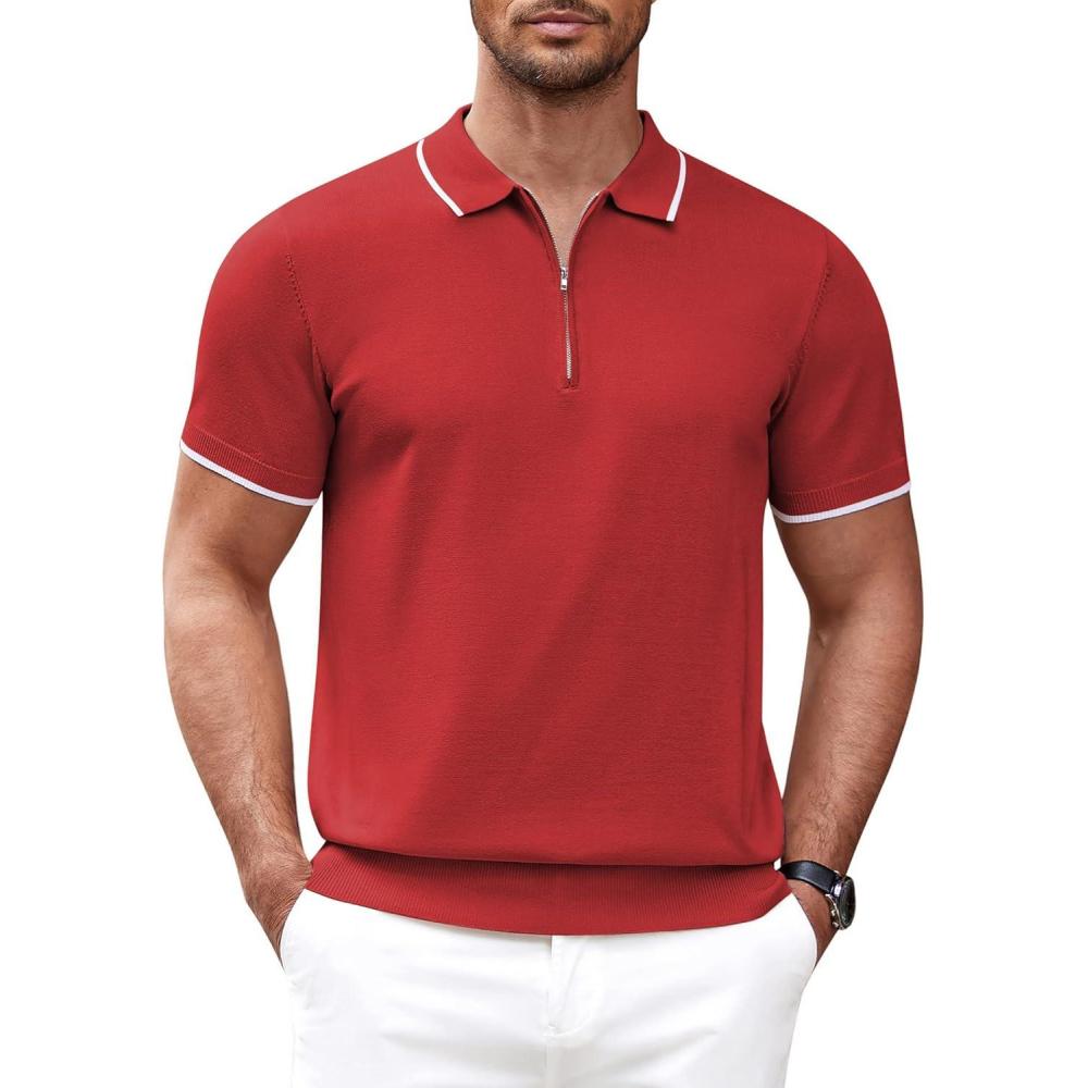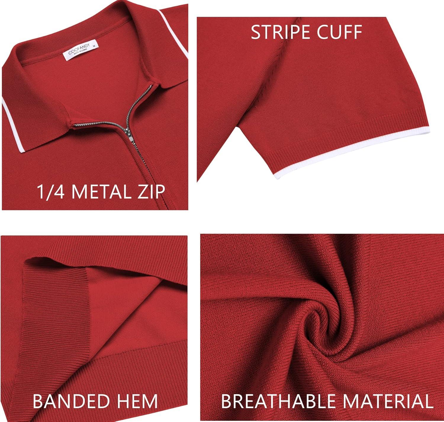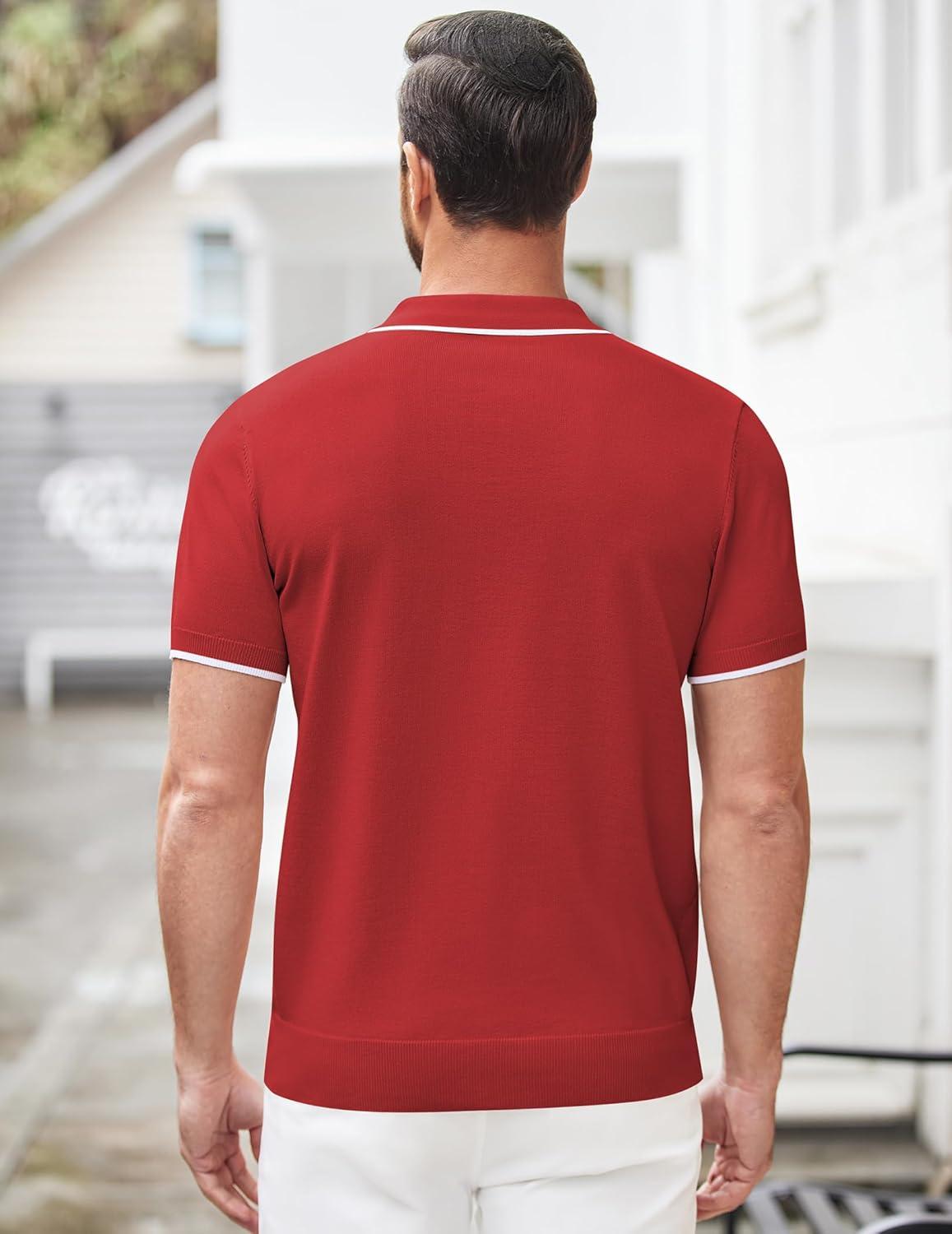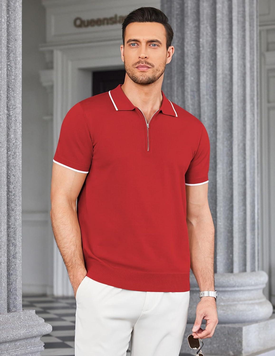 COOFANDY Men's Zipper Polo Shirt Casual Knit Short Sleeve Polo T Shirt Classic Fit Shirts(Red)