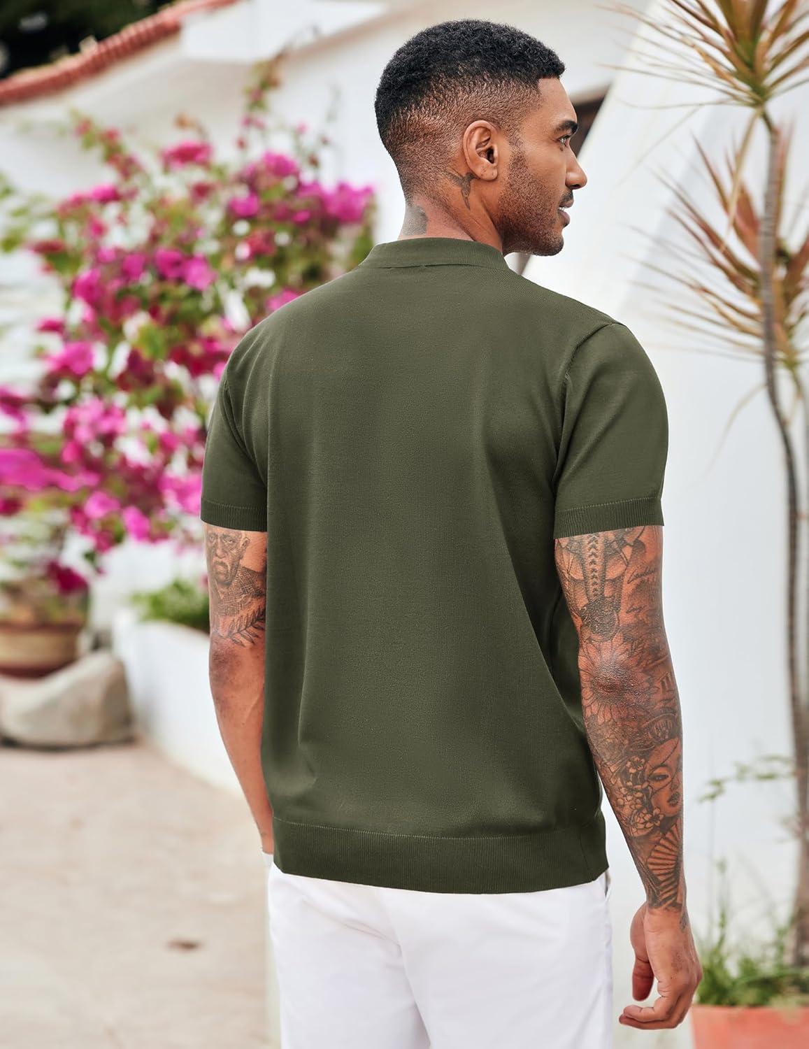 COOFANDY Men’s Zipper Polo Shirt Casual Knit Short Sleeve Polo T Shirt Classic Fit Shirts(Solid- Army Green)