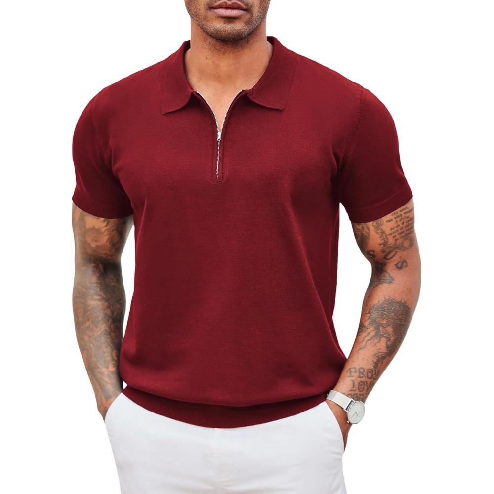 COOFANDY Men's Zipper Polo Shirt Casual Knit Short Sleeve Polo T Shirt Classic Fit Shirts(Solid- Wine Red)