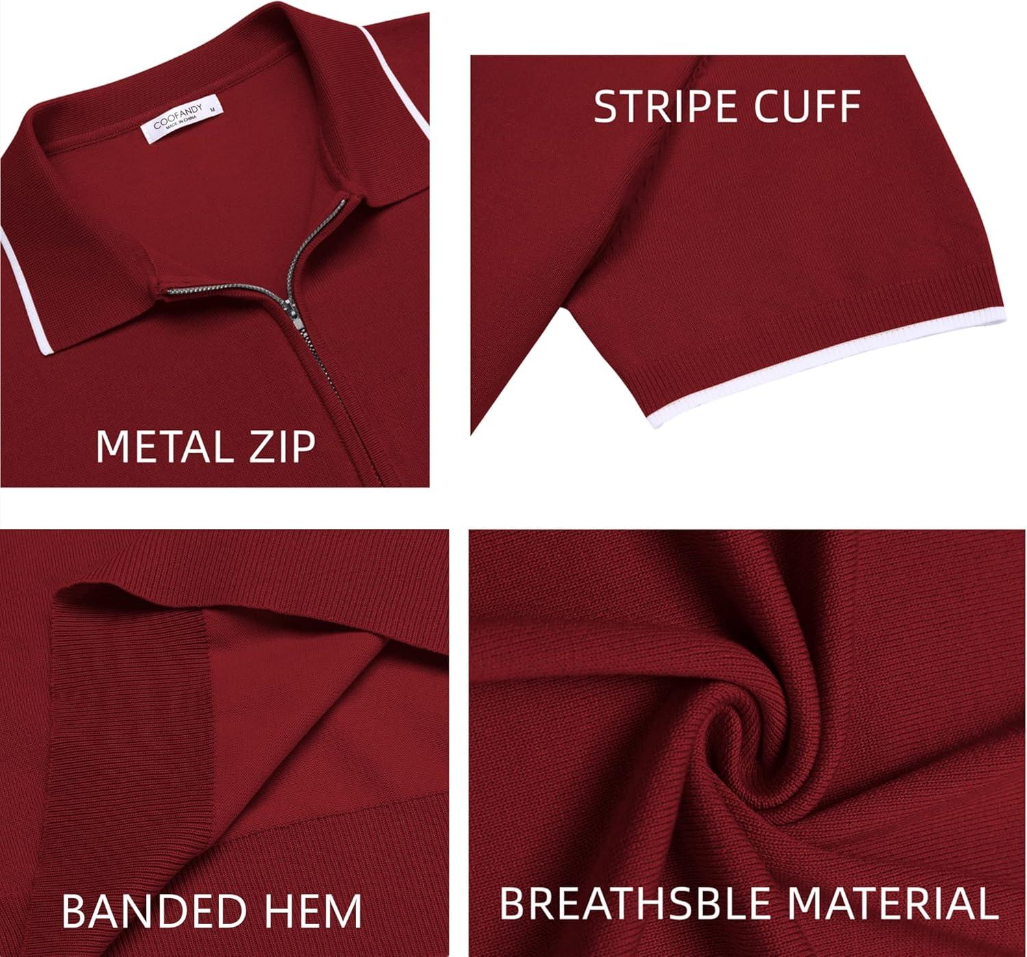 COOFANDY Men’s Zipper Polo Shirt Casual Knit Short Sleeve Polo T Shirt Classic Fit Shirts(Wine Red)