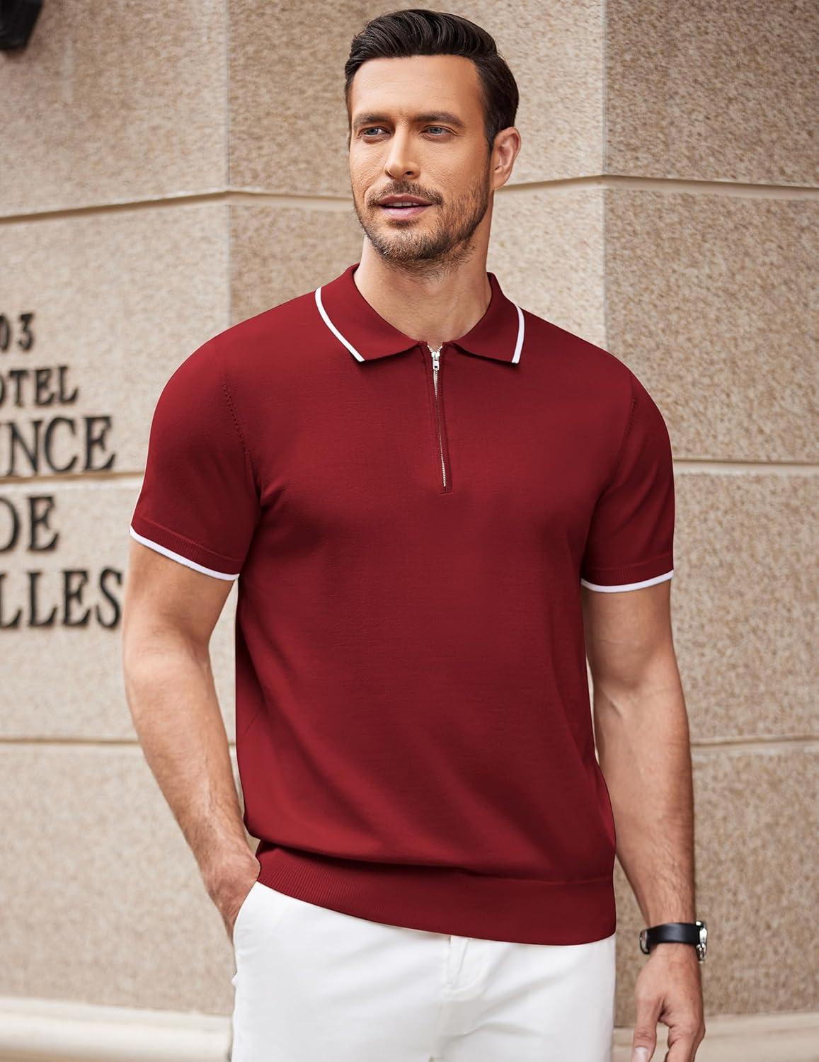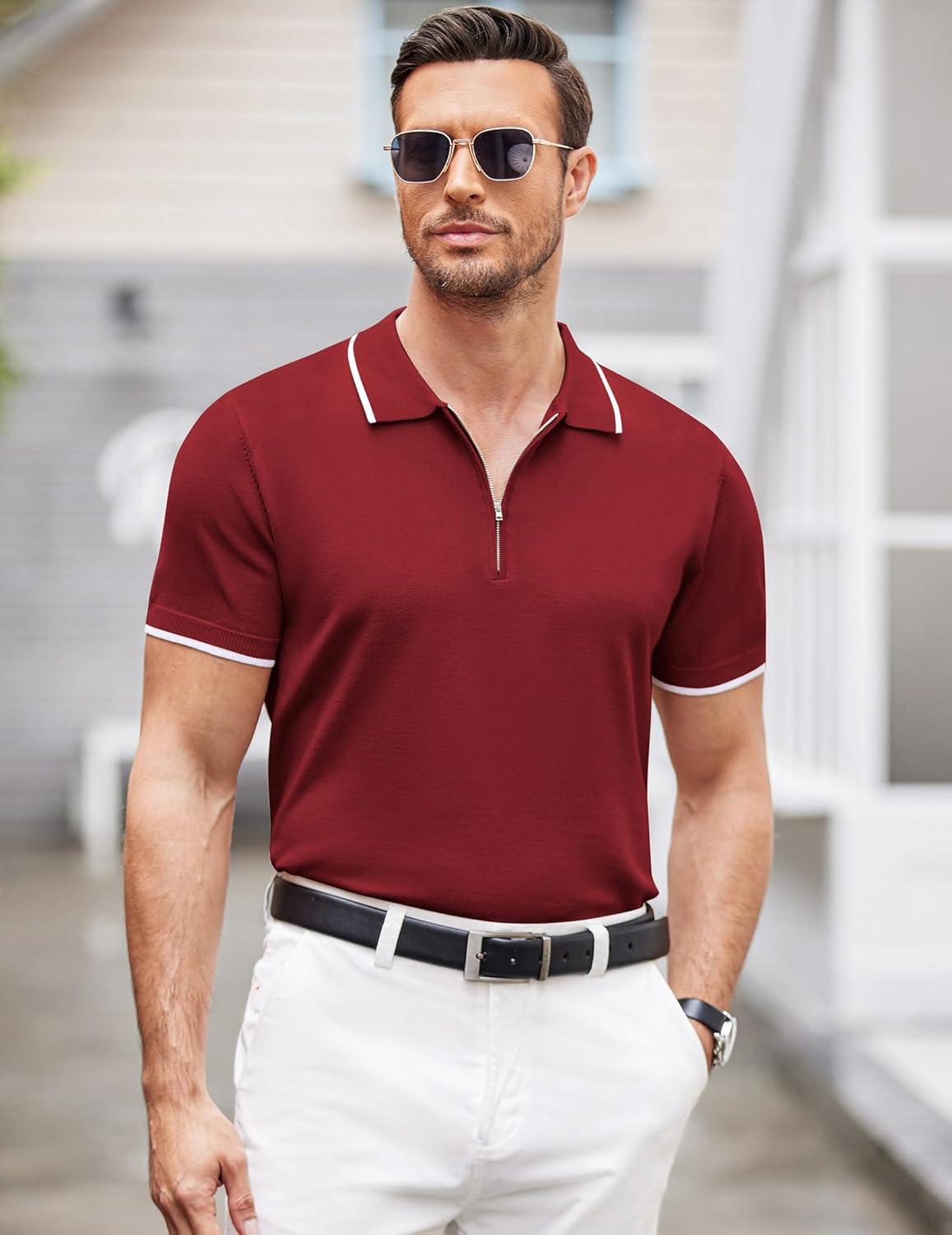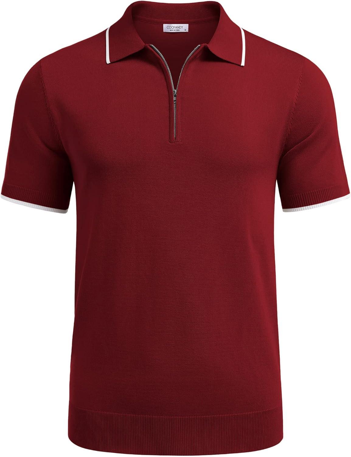 Don’t wait, get up to 50% off on COOFANDY Men’s Zipper Polo Shirt Casual Knit Short Sleeve Polo T Shirt Classic Fit Shirts(Wine Red) during our end-of-season sale event.