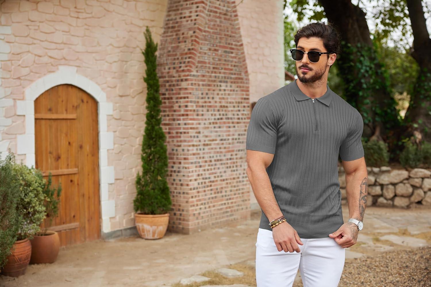 Don’t miss out on our limited-time offer: buy COOFANDY Men’s Zipper Polo Shirts Short Sleeve Ribbed Knit Polo T Shirts Fashion Casual Golf Shirts(Grey), get a free {accessory}!