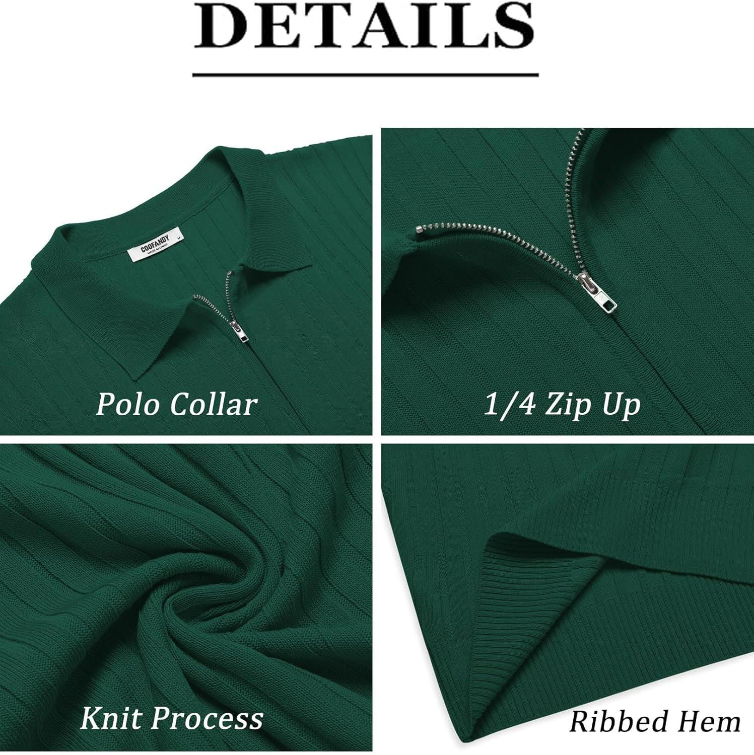 COOFANDY Men's Zipper Polo Shirts Short Sleeve Ribbed Knit Polo T Shirts Fashion Casual Golf Shirts(Hunter Green)