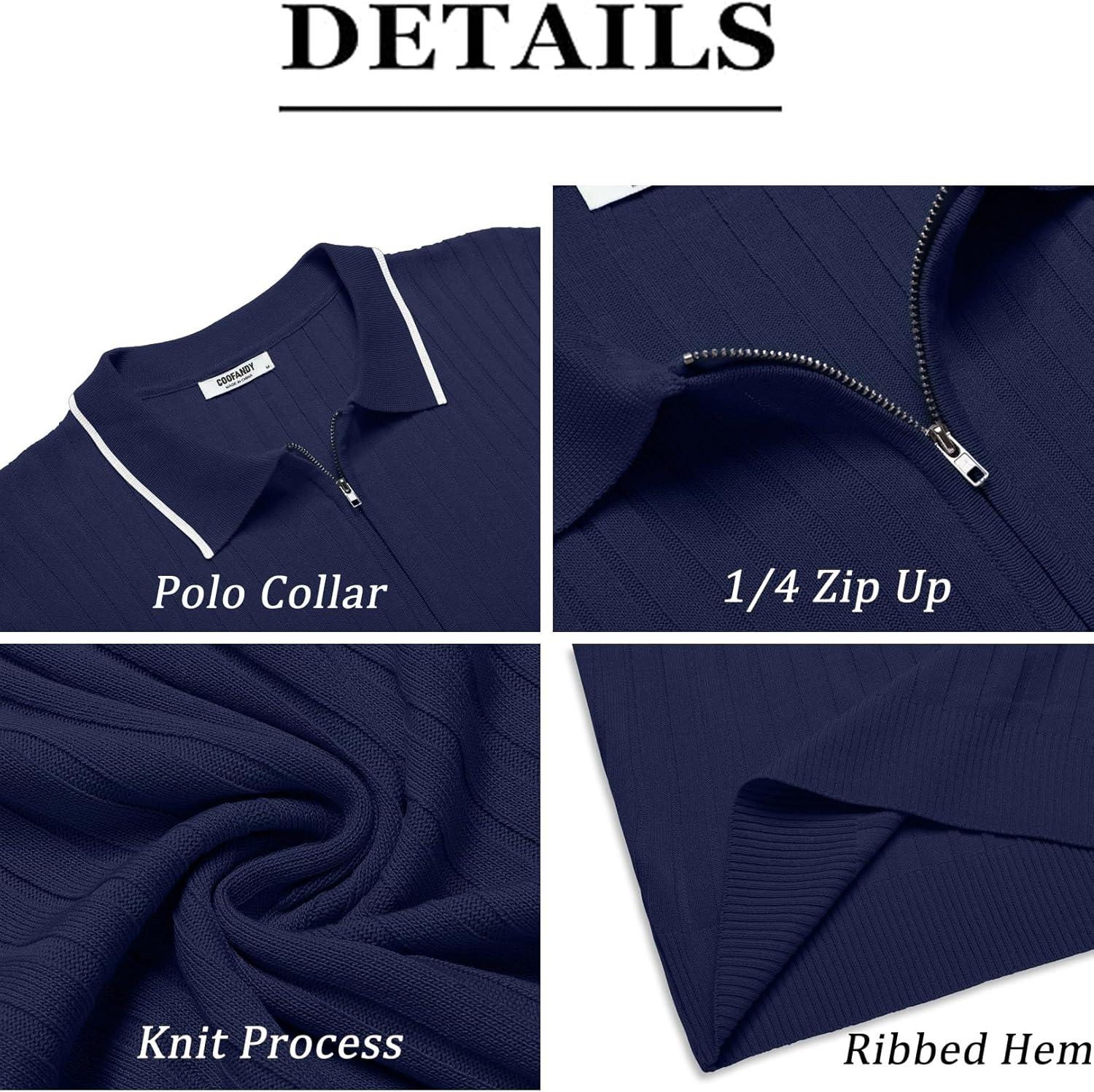 COOFANDY Men’s Zipper Polo Shirts Short Sleeve Ribbed Knit Polo T Shirts Fashion Casual Golf Shirts(Navy Blue)