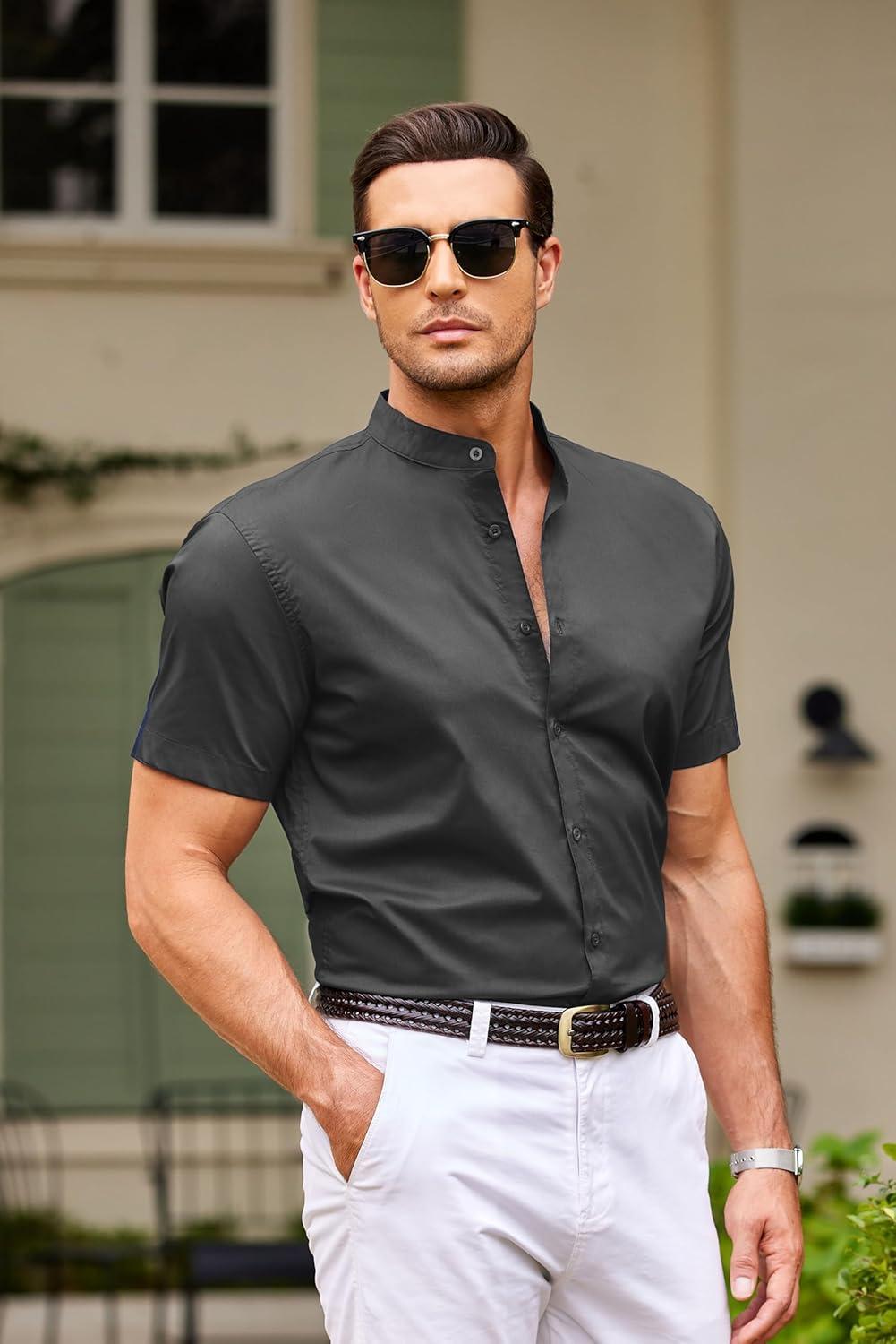 Score big on COOFANDY Muscle Fit Dress Shirts for Men Banded Collar Casual Button Down Shirts(Dark Grey) and accessories during our BOGO sale. Buy one, get one 50% off!