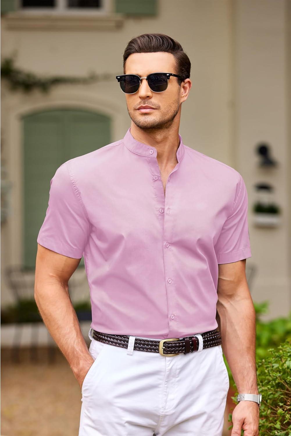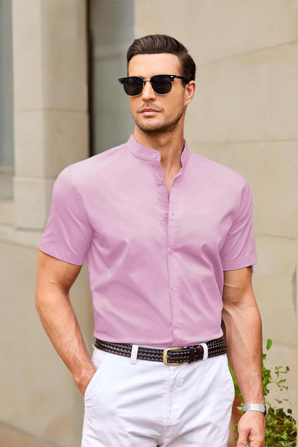 Don’t miss out on our limited-time offer: buy COOFANDY Muscle Fit Dress Shirts for Men Banded Collar Casual Button Down Shirts(Pink), get {accessory} 50% off!