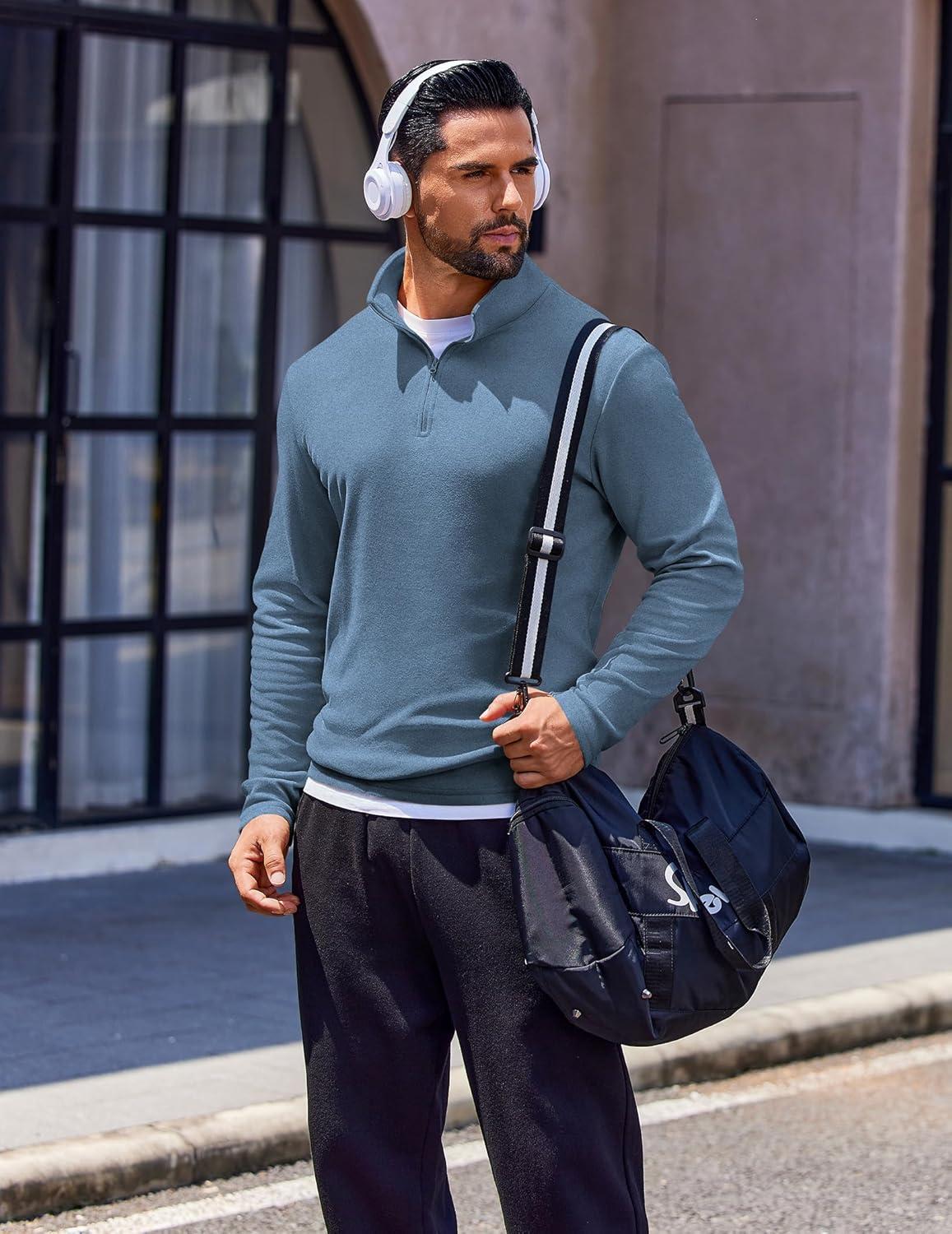COOFANDY Quarter Zip Pullover Men Long Sleeve Sweatshirts for Men Fleece Sweater Fall(Dark Green)