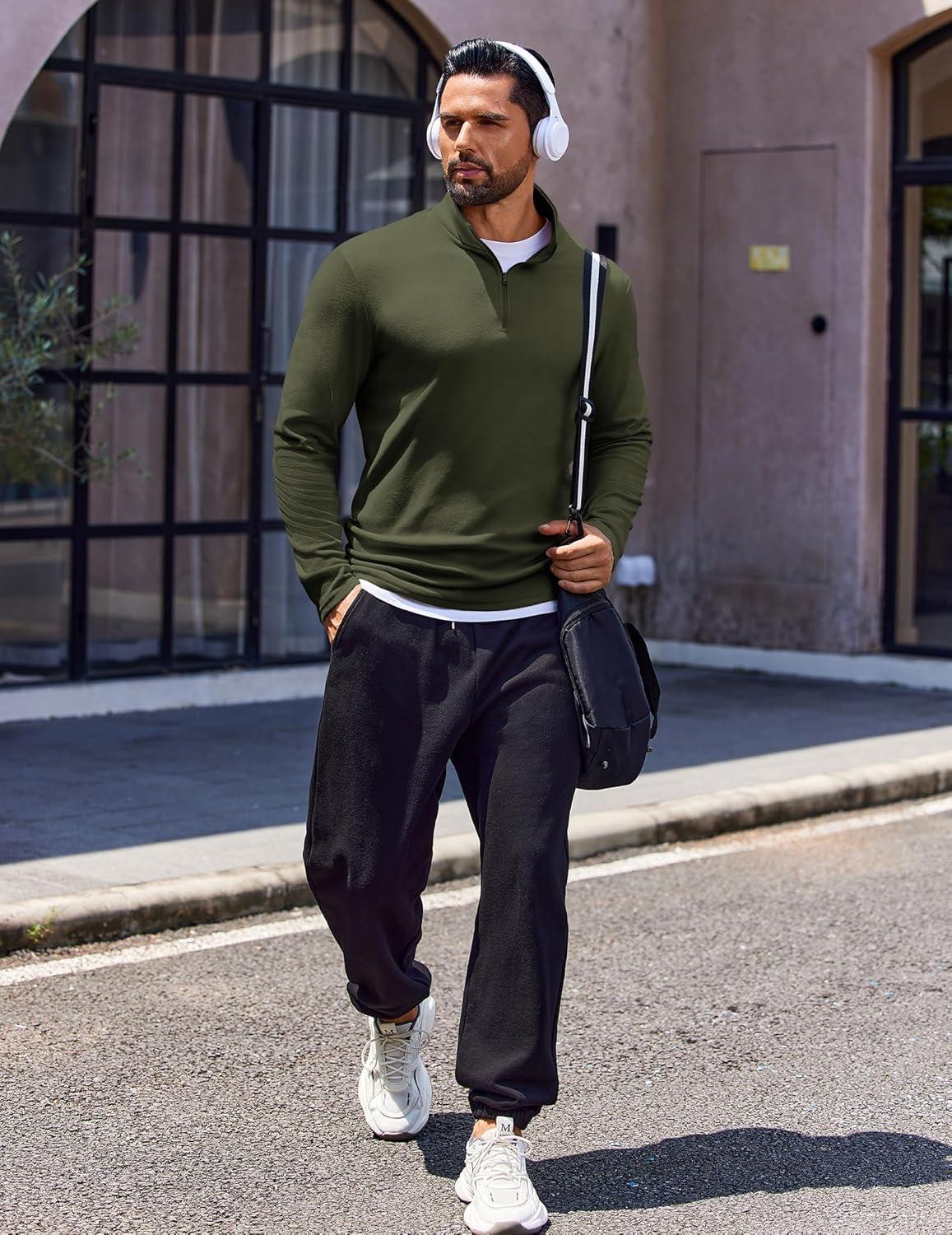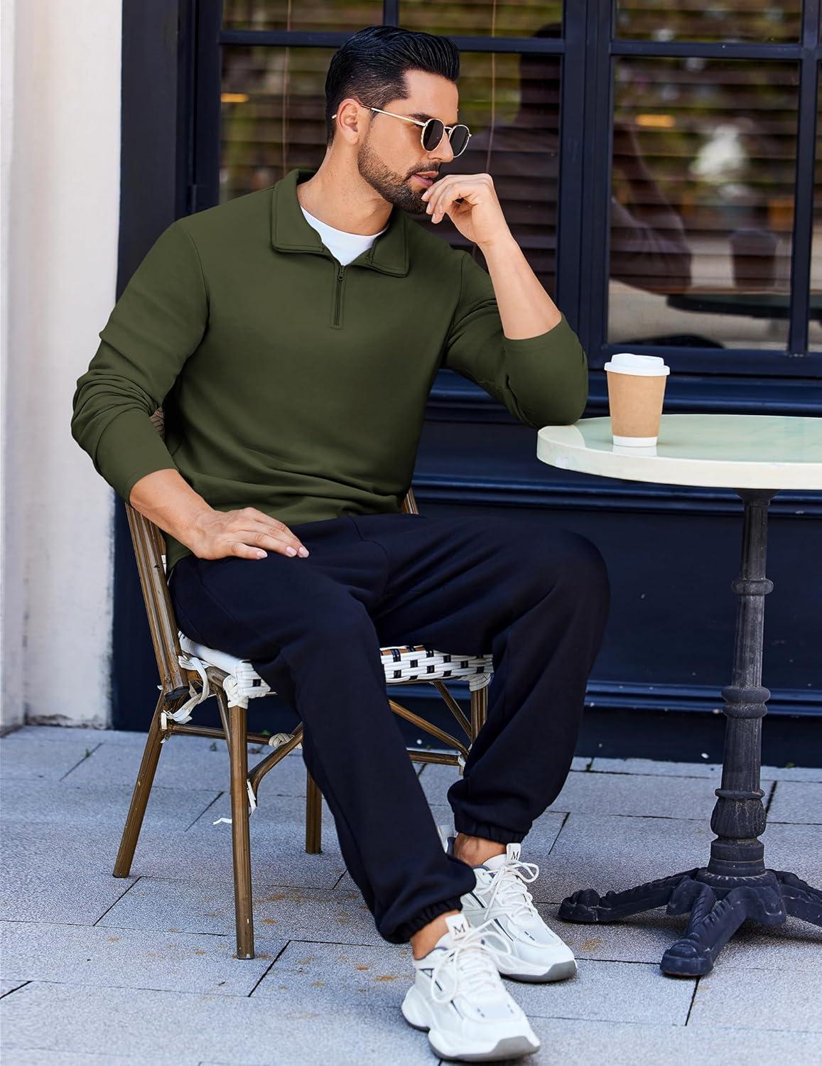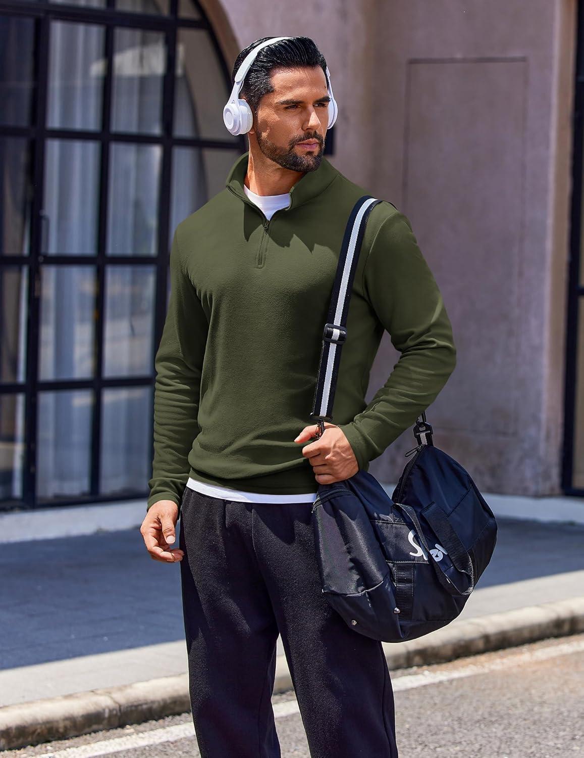 COOFANDY Quarter Zip Pullover Men Long Sleeve Sweatshirts for Men Fleece Sweater Fall(Dark Green)