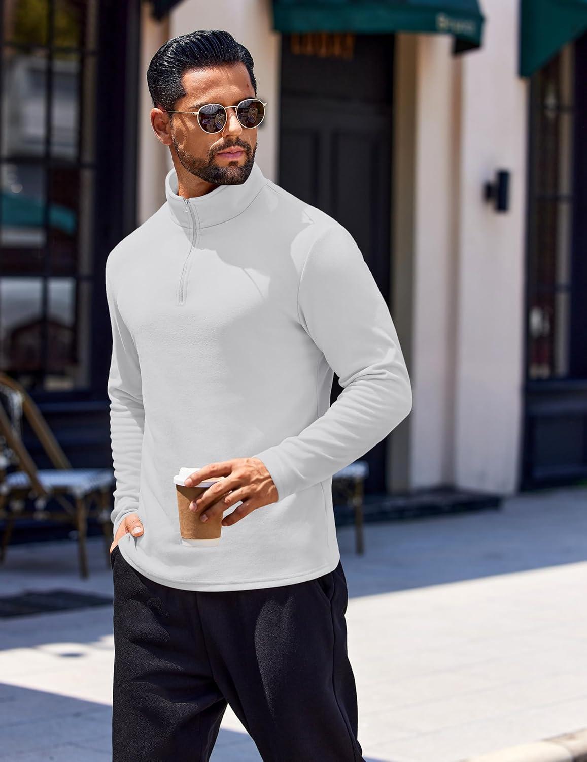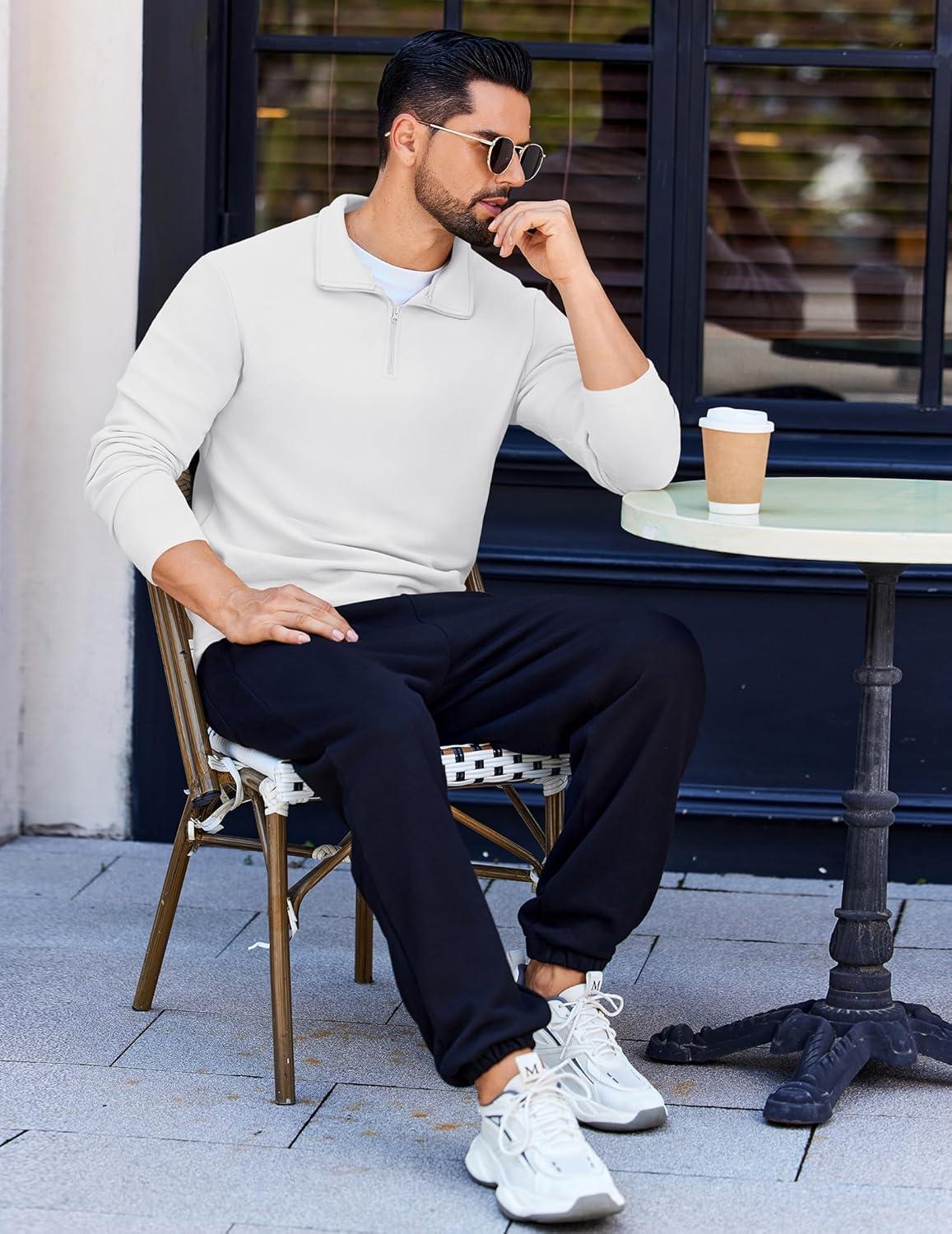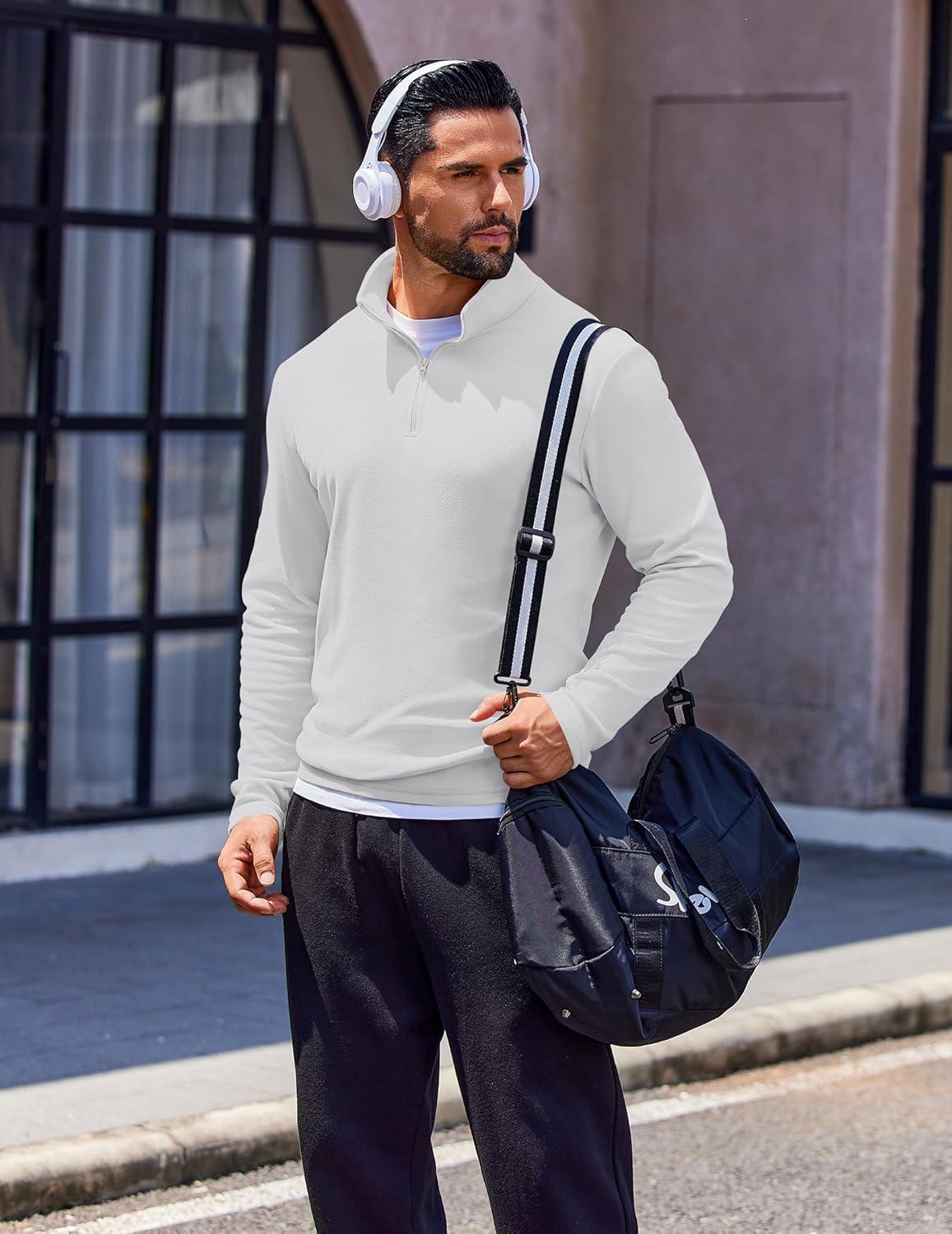 COOFANDY Quarter Zip Pullover Men Long Sleeve Sweatshirts for Men Fleece Sweater Fall(White)