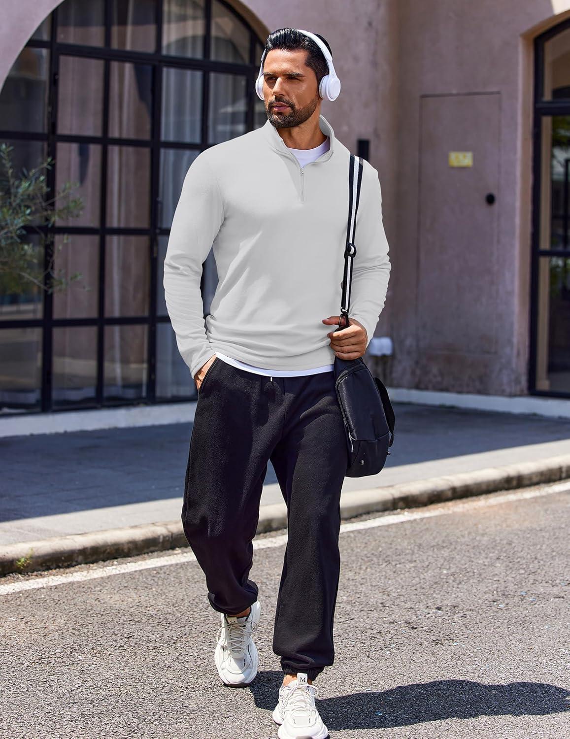 COOFANDY Mens Quarter Zip Pullover Long Sleeve Casual 1/4 Zip Sweatshirt Lightweight Solid Shirts Regular Fit(Drak Grey)