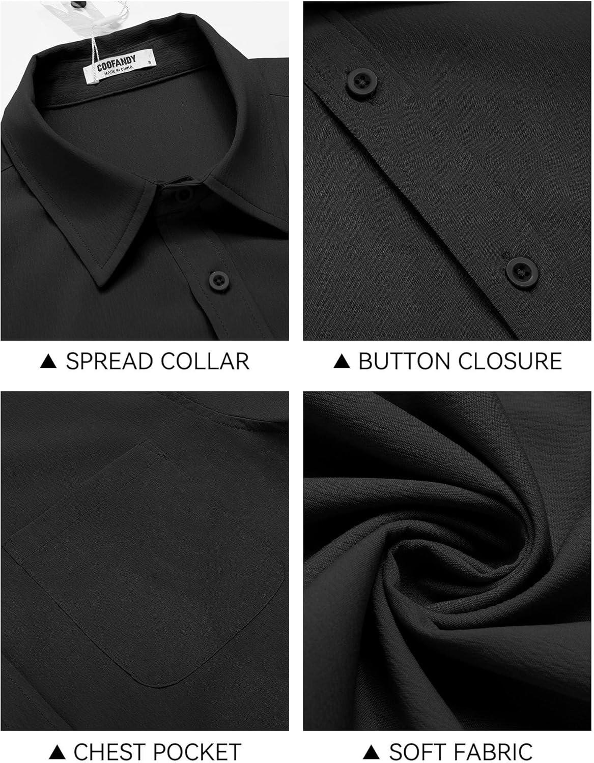 COOFANDY Shirts for Men Short Sleeve Button Down Shirt Casual Summer Beach Shirt(Black)
