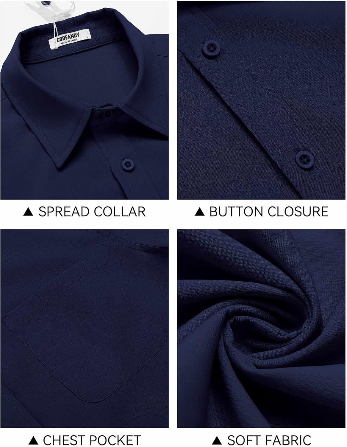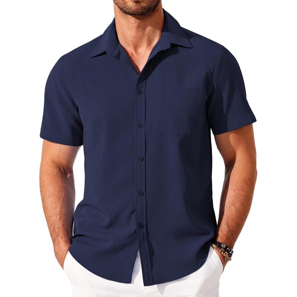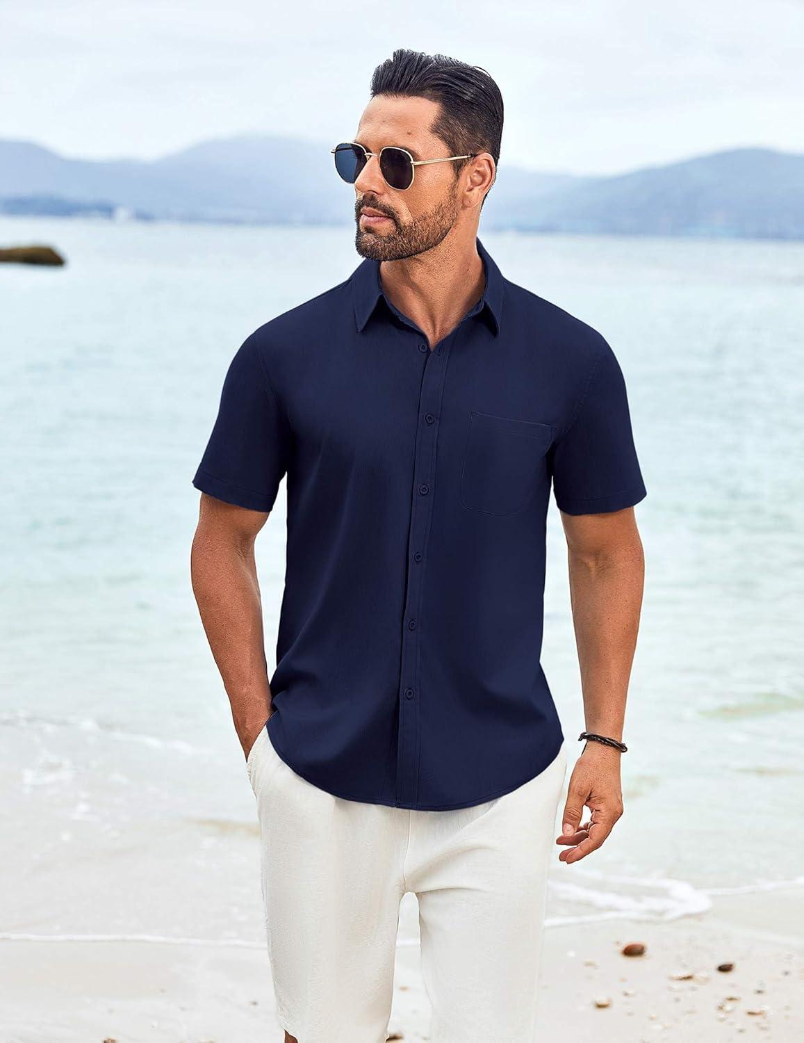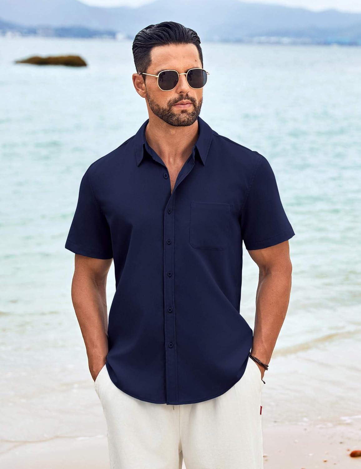 COOFANDY Shirts for Men Short Sleeve Button Down Shirt Casual Summer Beach Shirt(Navy Blue)