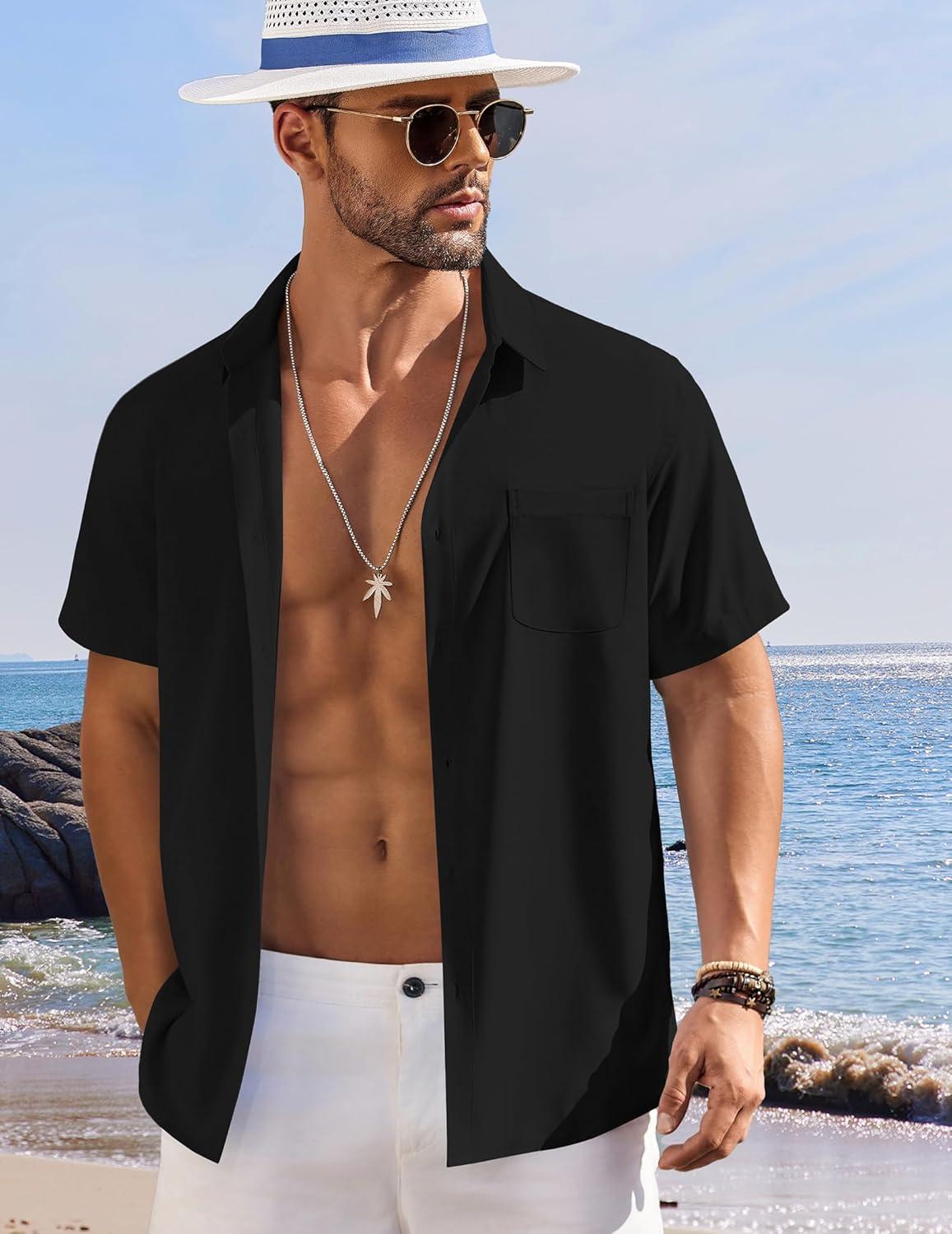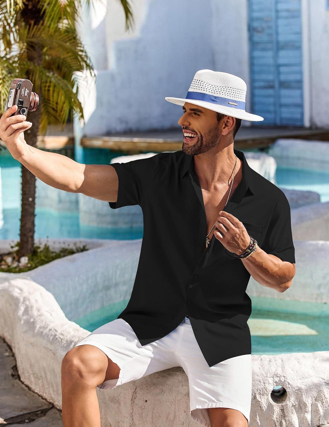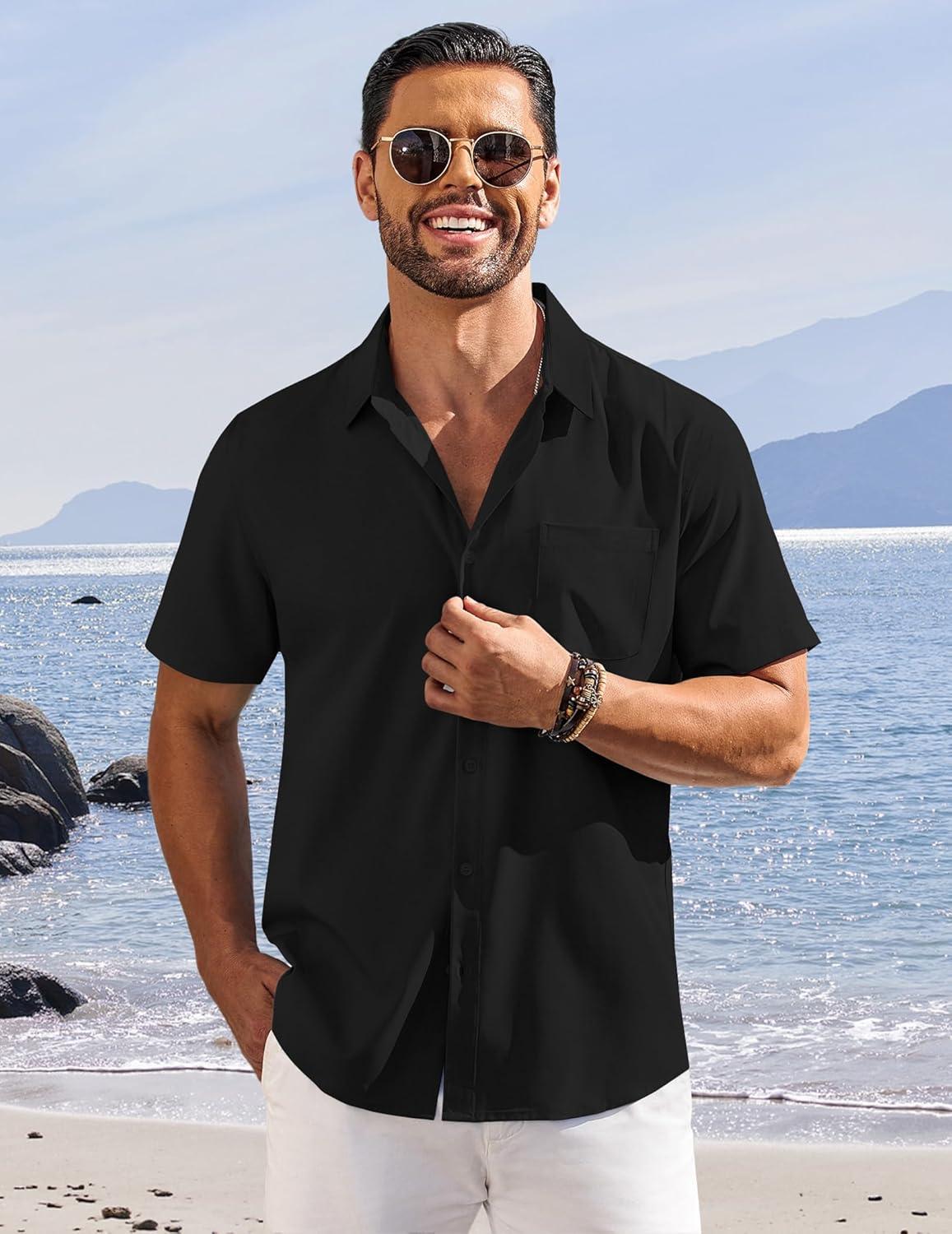 COOFANDY Shirts for Men Short Sleeve Button Down Shirt Casual Summer Beach Shirts(Black)