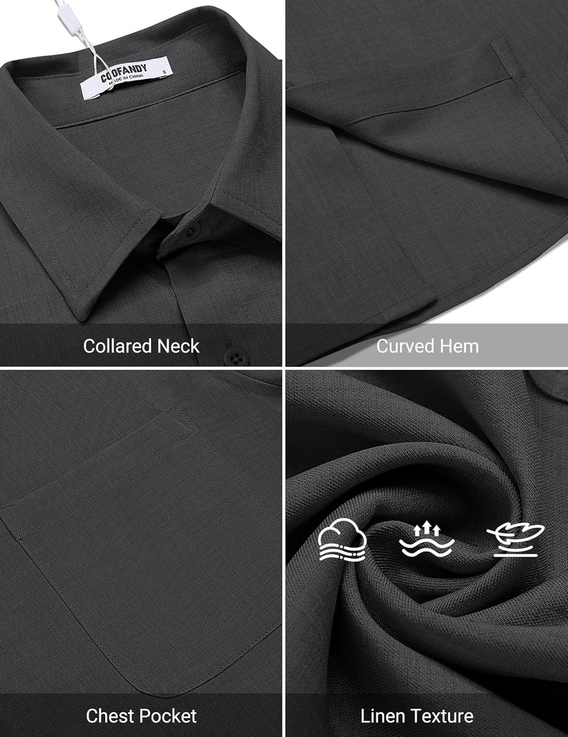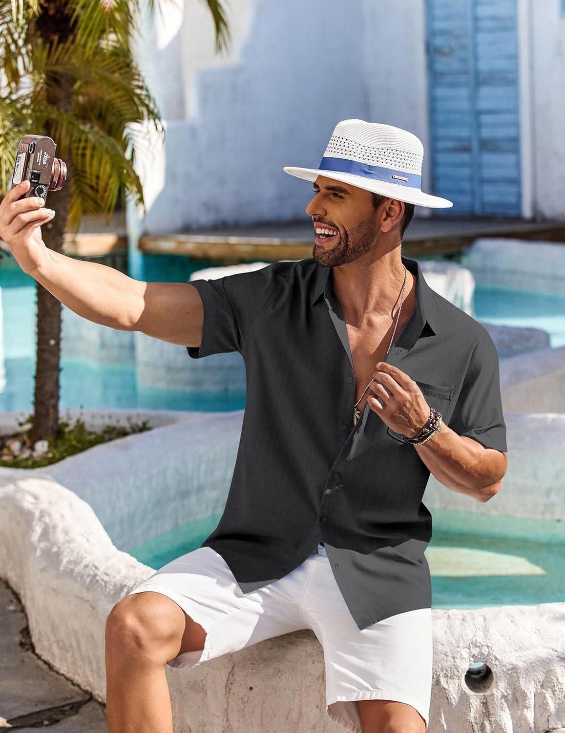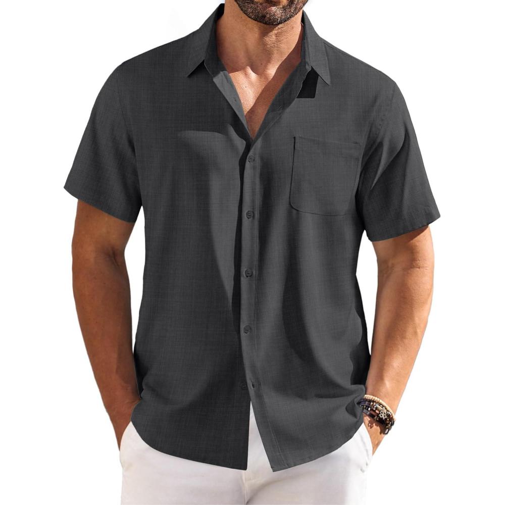 COOFANDY Shirts for Men Short Sleeve Button Down Shirt Casual Summer Beach Shirts(Dark Grey)