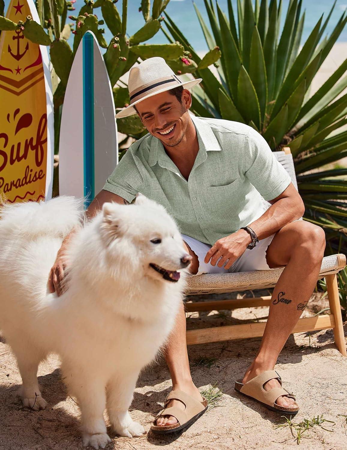 COOFANDY Shirts for Men Short Sleeve Button Down Shirt Casual Summer Beach Shirts(Light Green)