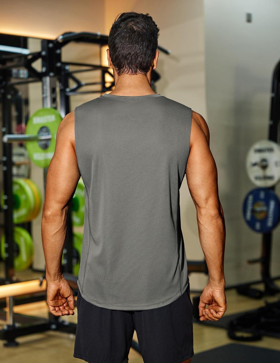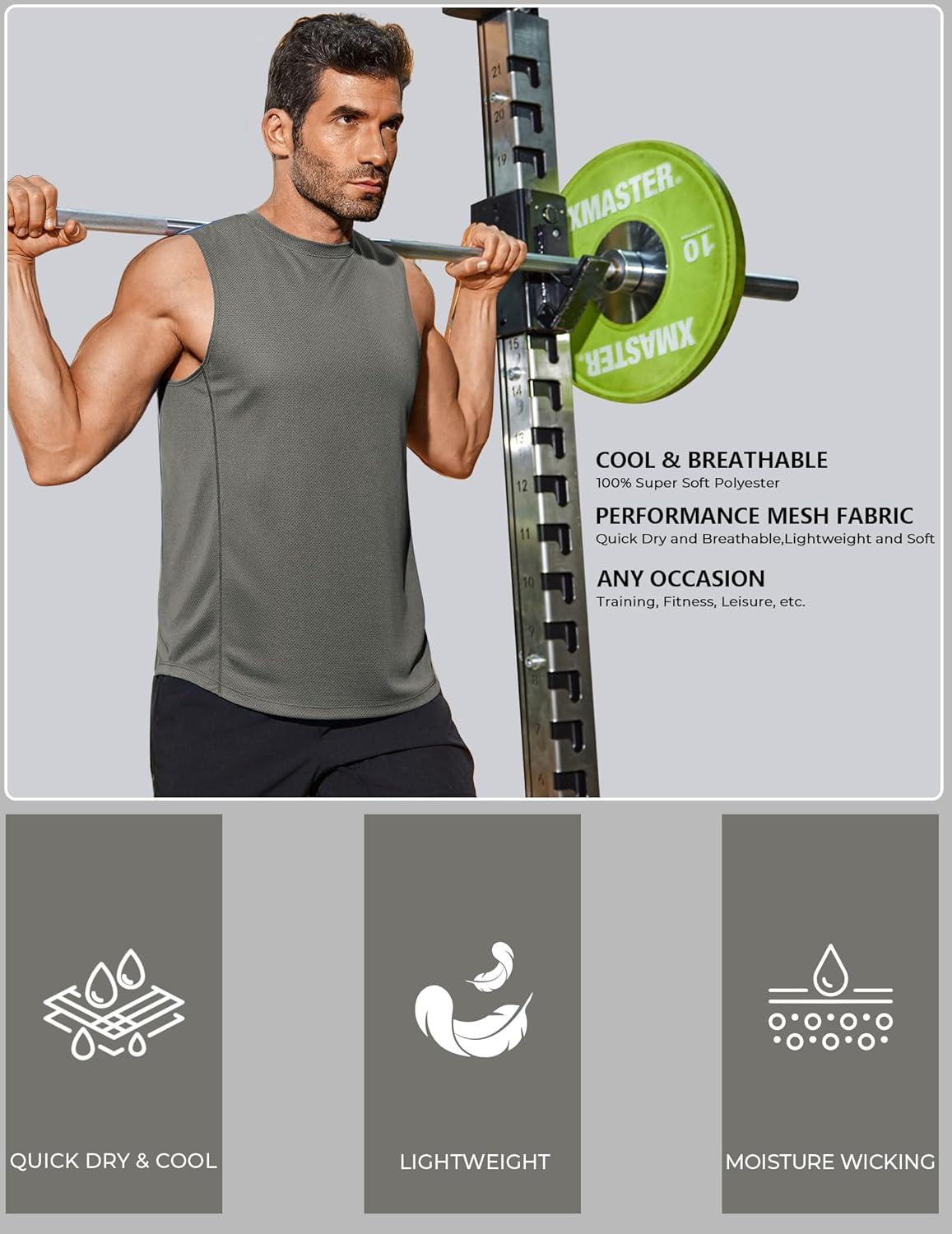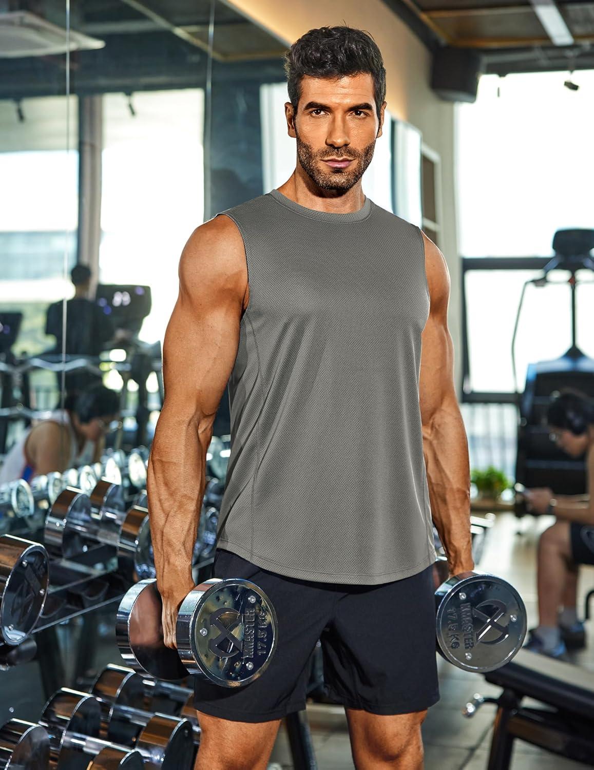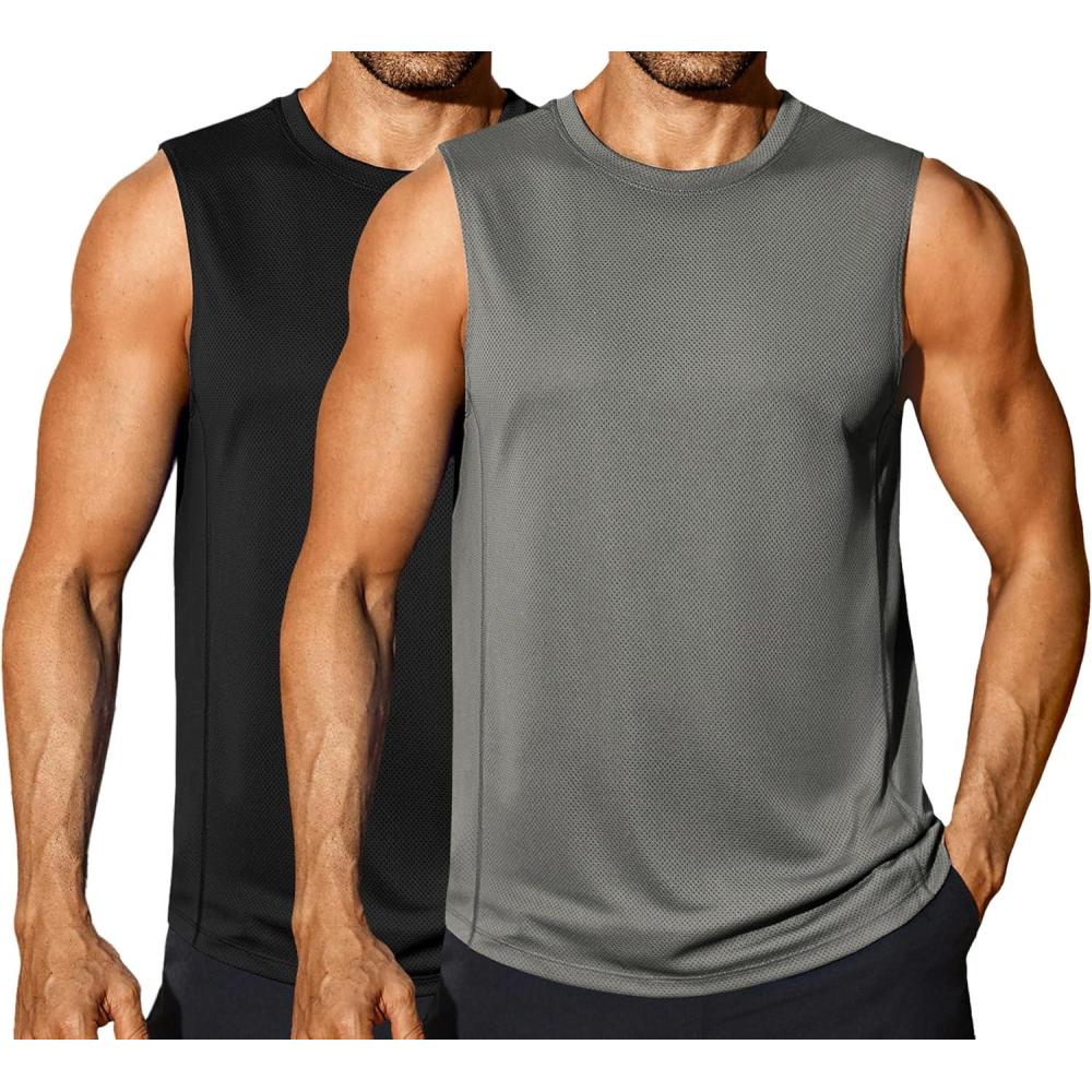 COOFANDY Sleeveless Muscle Shirts for Men Dry Fit Workout Gym Tank Tops Summer Swim Beach Shirt(Black/Light Gray)