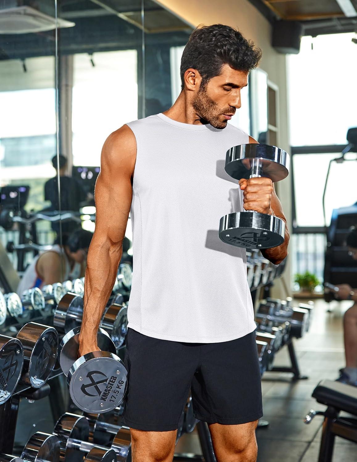 COOFANDY Sleeveless Muscle Shirts for Men Dry Fit Workout Gym Tank Tops Summer Swim Beach Shirt(Black/Light Gray)