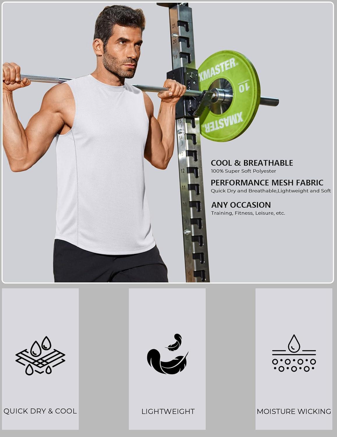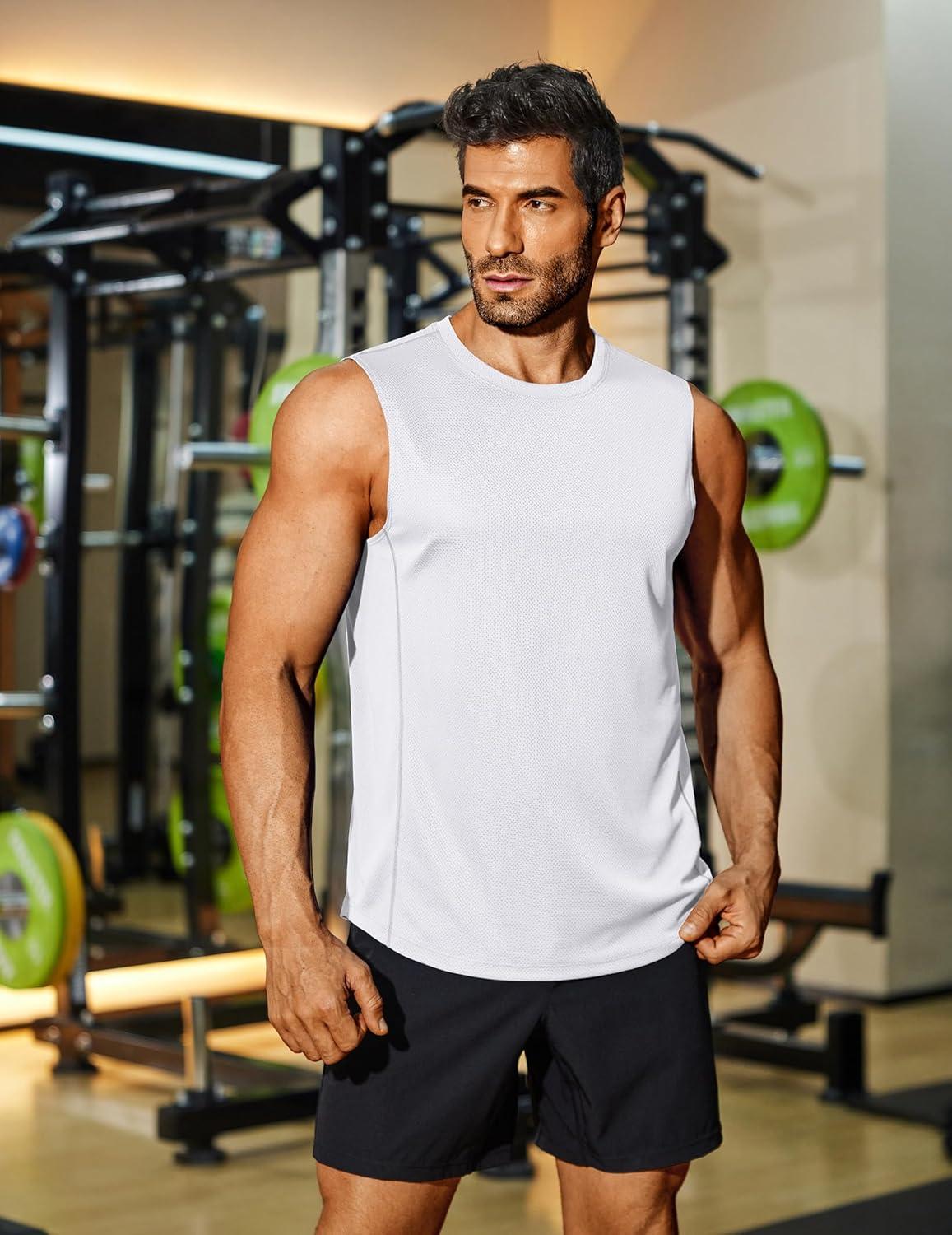 COOFANDY Sleeveless Muscle Shirts for Men Dry Fit Workout Gym Tank Tops Summer Swim Beach Shirt(Black/White)
